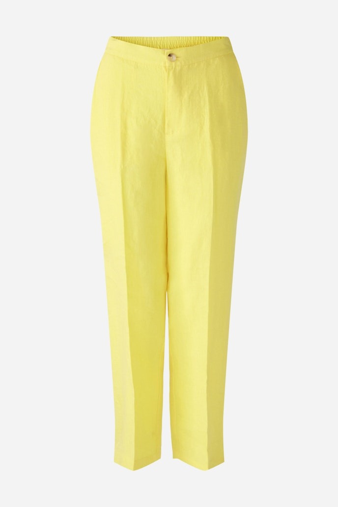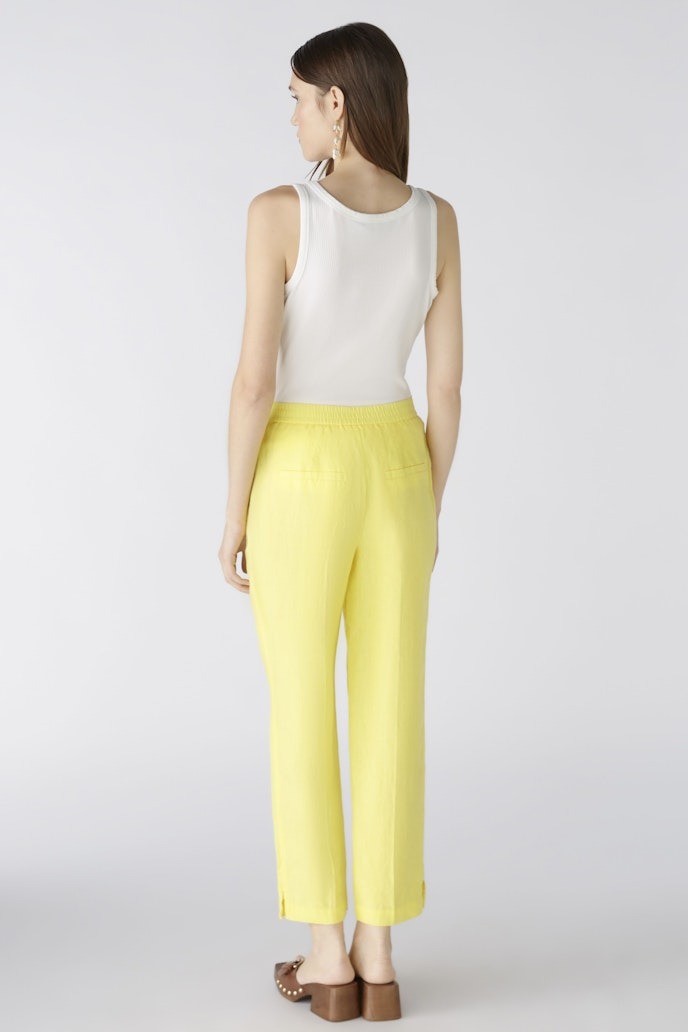 Идеальные летние брюки - 100% лен укороченного кроя, воздушные, удобные и всегда шикарные. Средняя талия, прямой крой, укороченный. Специальная обработка пояса, чистая спереди, удобная сзади с эластичным поясом. Боковые карманы, ложные прорезные карманы сзади. Боковые разрезы на подоле. Длина для размера 42: 72 см.