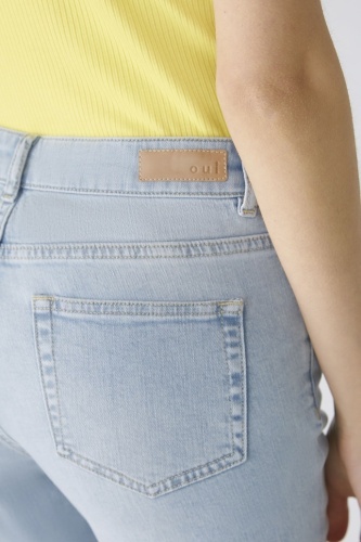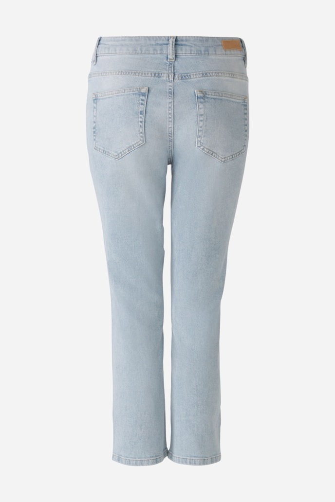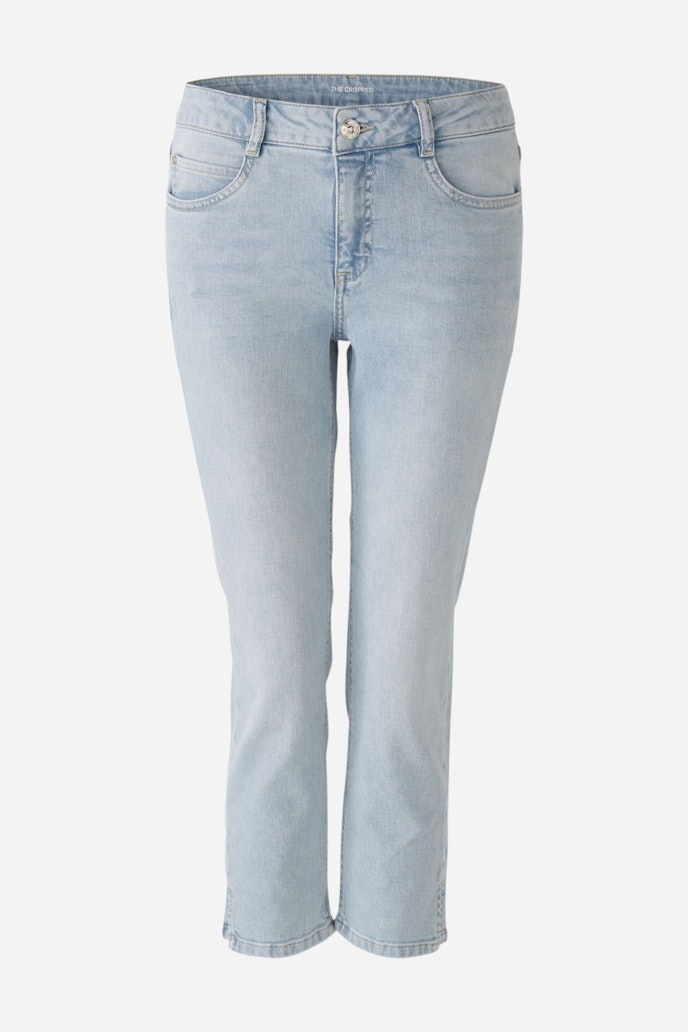 Отличные базовые джинсы длиной капри с разрезами по бокам — отлично сочетаются со всеми верхами. Эластичный, легкий деним, легко стирается. Прямой, узкий крой, укороченная длина. Типичное решение джинсового пояса с петлями для ремня. Классический фасон с пятью карманами. Боковые разрезы на концах ног. Длина для размера 42: 60 см.
