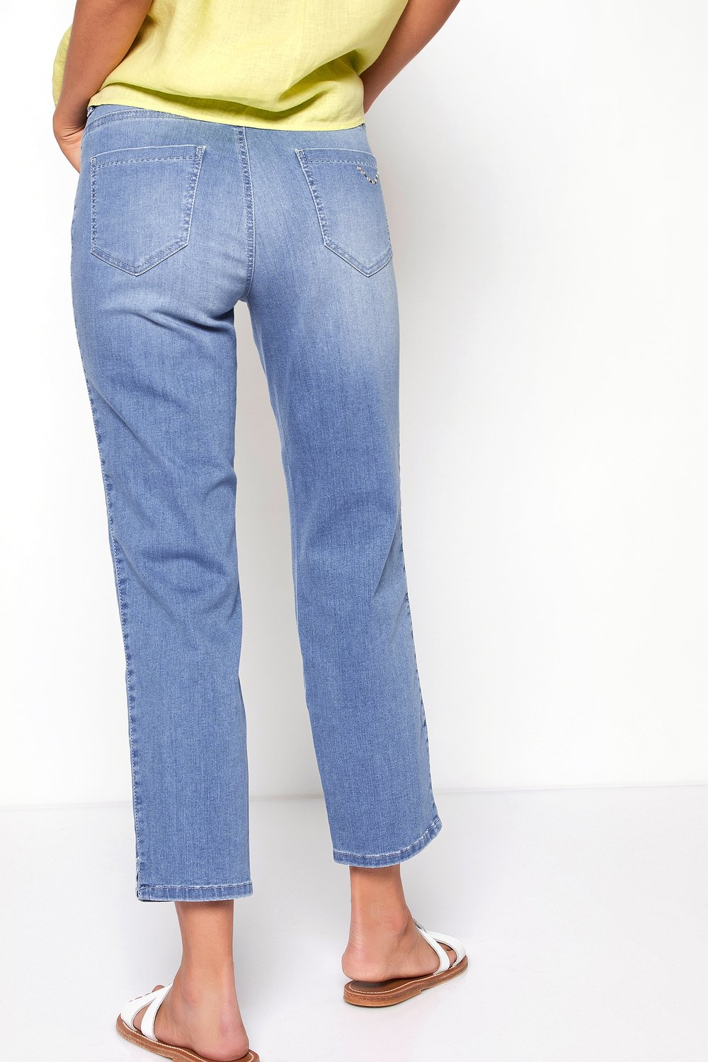 Укороченные джинсы прямого кроя – универсальный вариант низа, великолепно сочетающийся с любым верхом. Комфортная средняя посадка, передние карманы, накладные карманы сзади.