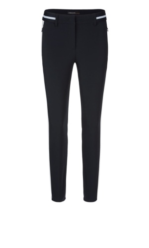 Брюки в спортивном стиле. Средняя посадка, зауженный крой. Застежка-молния. Лампасы по бокам.