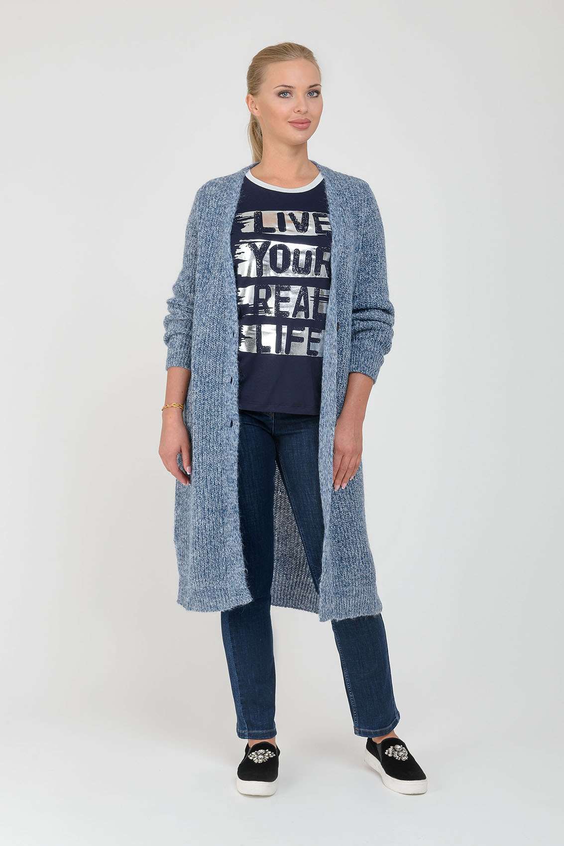 Джинсы с карманами. Средняя посадка. Силуэт slim подчеркивает форму ног. Джинсы - базовый предмет гардероба, необходимый для демократичного образа в стиле кэжуал.
