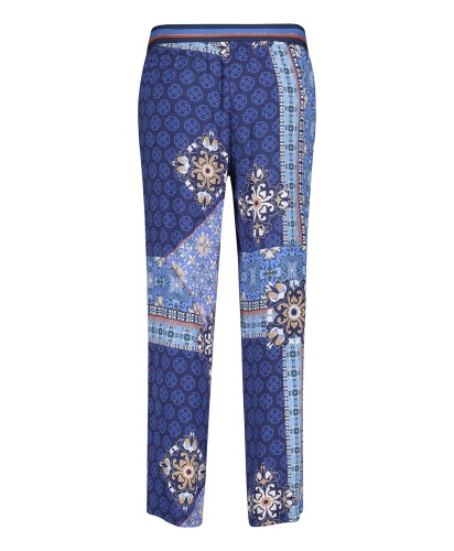 Клеш снова в моде! Брюки с трендовым этническим принтом. Эластичный пояс. Защипы на талии подчеркивают женственную фигуру. Вискозный материал приятен к телу и обеспечивает максимальный комфорт. В сочетании с однотонной футболкой или блузкой эти брюки создают яркий современный образ.