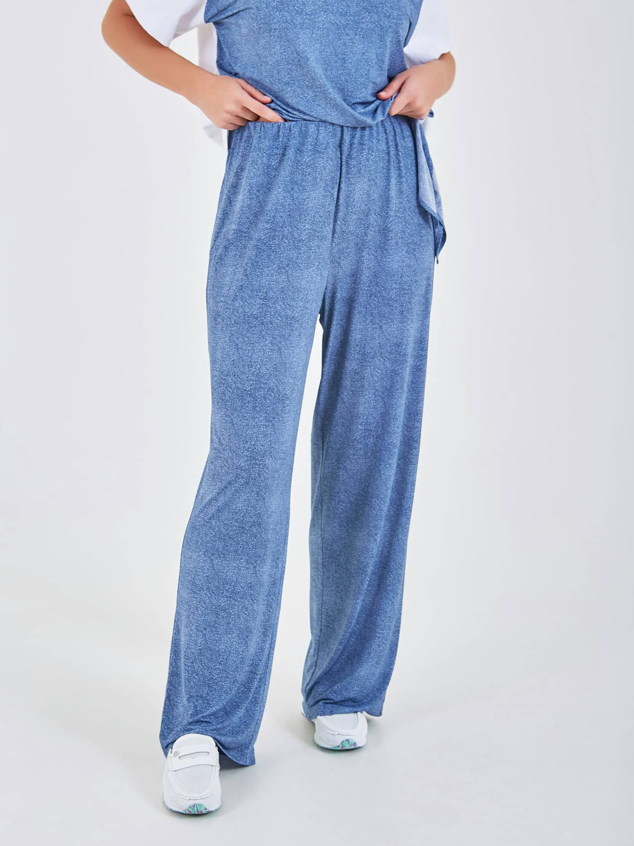 Брюки выполнены из мягкого материала и имеют свободный крой, что обеспечивает комфорт при носке. Они представлены в синих тонах и могут легко сочетаться с различной верхней одеждой, создавая стильный и расслабленный образ. Коллекция Весна-Лето 2025. Капсула "Сен-Тропе". Параметры модели: 89-70-92, рост 167, размер 44-46