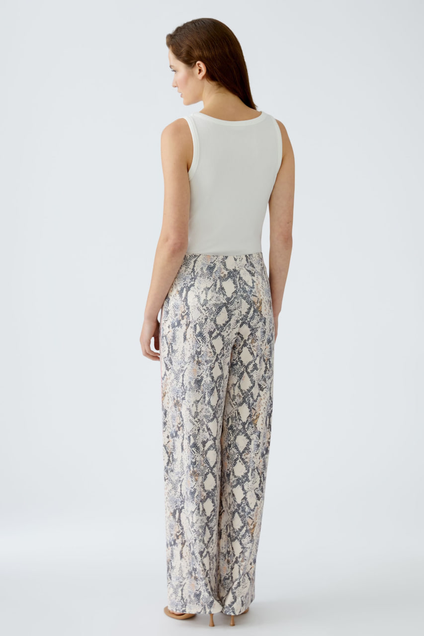 Брюки выполнены в классическом стиле с современным анималистическим принтом, что позволяет создавать как повседневные, так и более стильные образы. Материал обеспечивает комфорт при носке и простоту в уходе.