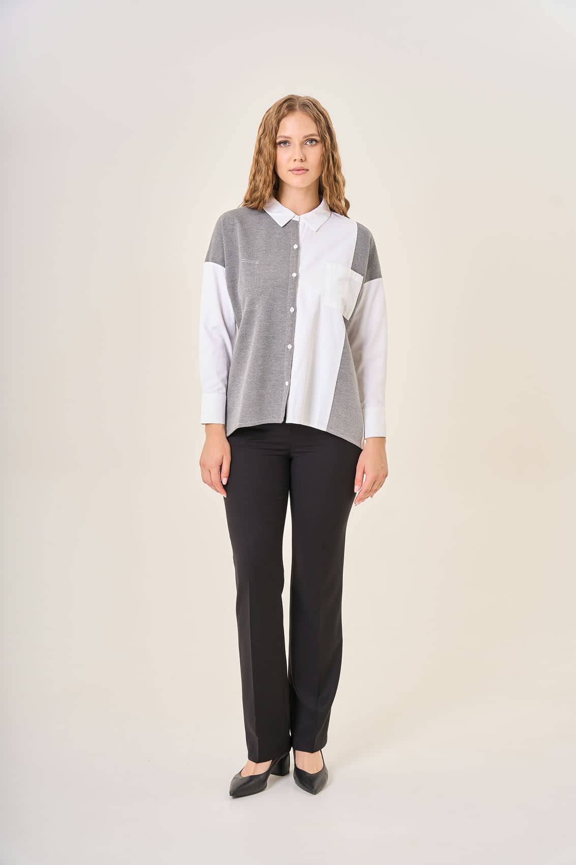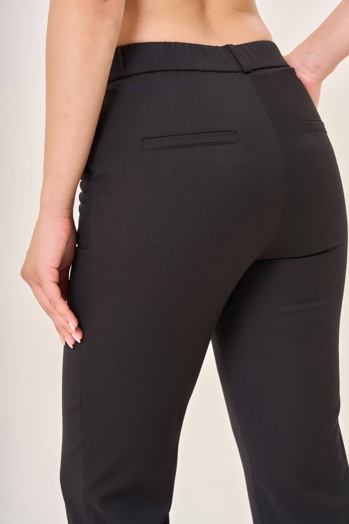 Женские классические брюки прямого кроя. Комфортная посадка на талии и элегантный крой идеально подходят для офисного и повседневного гардероба. Сзади расположены два аккуратных накладных кармана, подчёркивающие классическую стилистику изделия. Плотная ткань сохраняет форму и выглядит презентабельно на любой фигуре. Осень-Зима'25/26