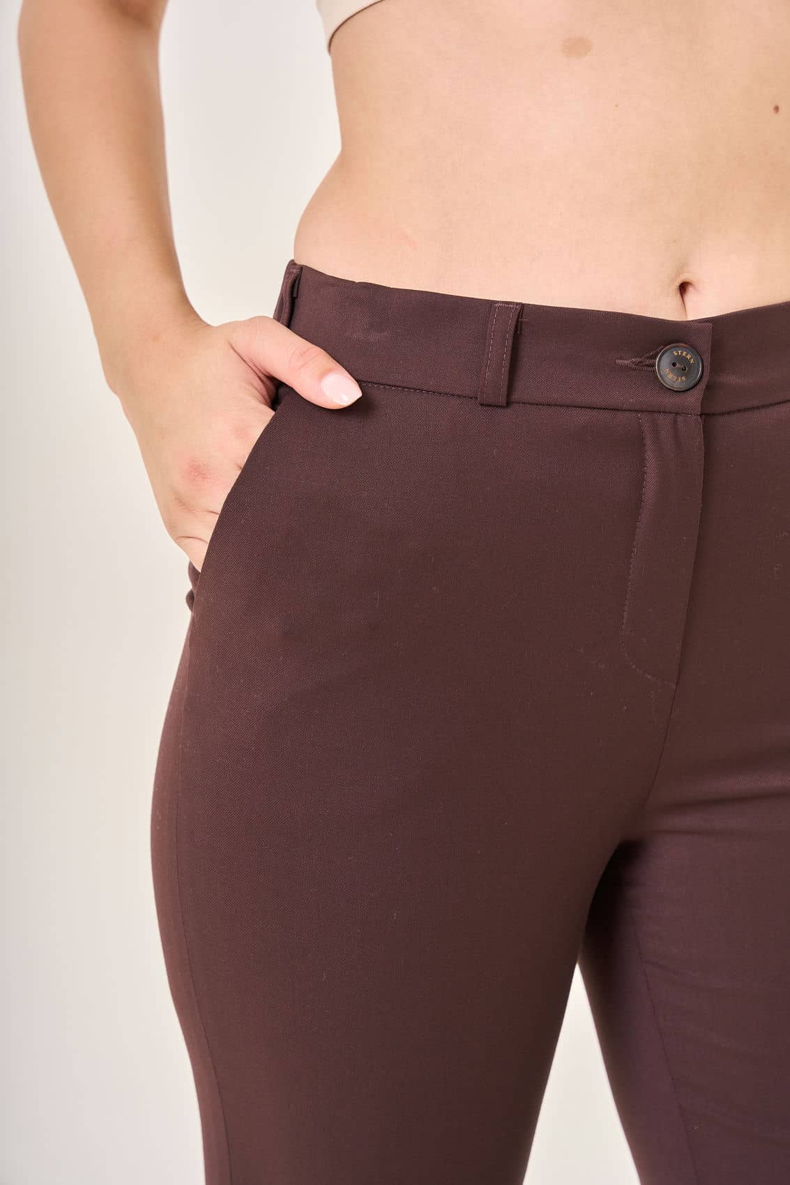 Брюки классического кроя. Высокая посадка талии обеспечивает максимальный комфорт и поддержку, подчеркивая тонкость фигуры. Прямая штанина создает лаконичный и элегантный силуэт, подходящий для любых ситуаций. Удобная застежка на молнию и пуговицу добавляют практичности и эстетики внешнему виду. Эти брюки отлично подходят для женщин всех типов фигур, визуально вытягивая силуэт и подчеркивая природную красоту. Осень-Зима'25/26. Капсула "Вино из одуванчиков"