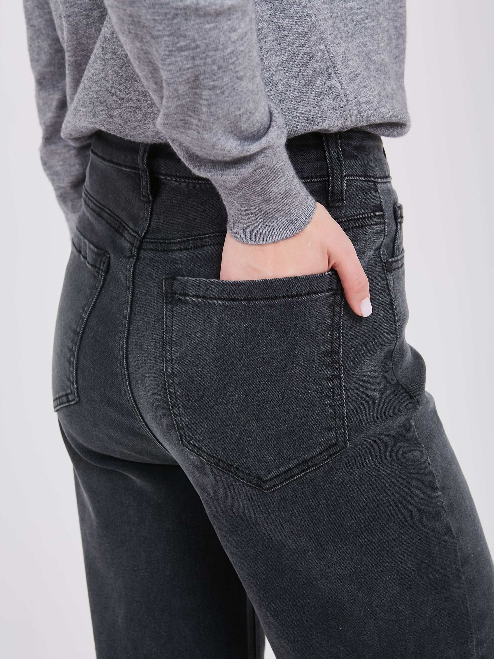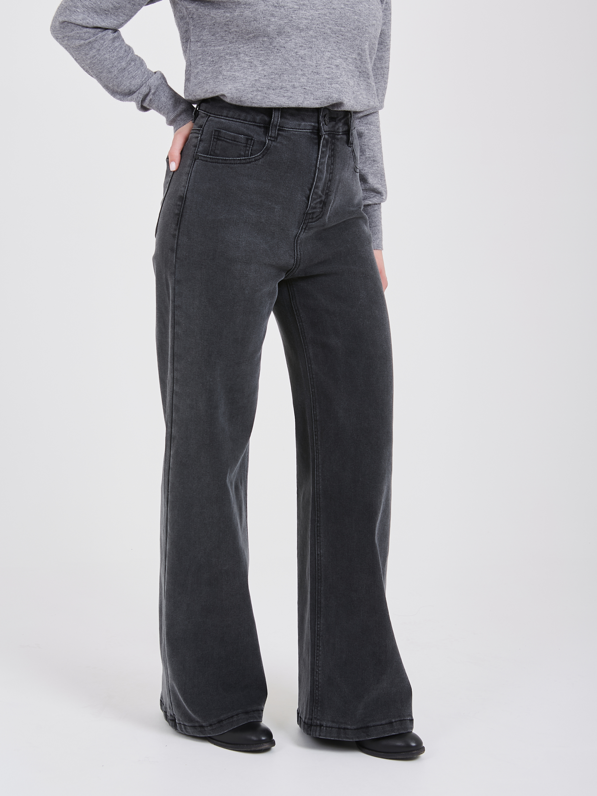 Серые джинсы на высокой посадке с прямым кроем, расширяющимся от бедра до низа. Эта базовая модель выполнена из качественного плотного денима, подходящего для осенне-зимнего сезона. Джинсы удобно сидят на любой фигуре, формируя идеальный силуэт и обеспечивая свободную посадку. Стильный и универсальный элемент гардероба, способный подчеркнуть индивидуальность своего владельца. Осень-Зима'25/26. Капсула "Вишневый сад"