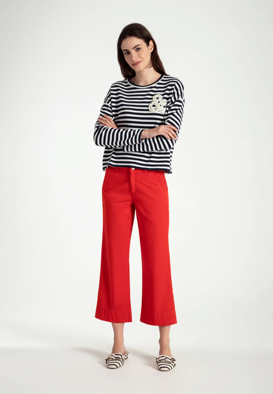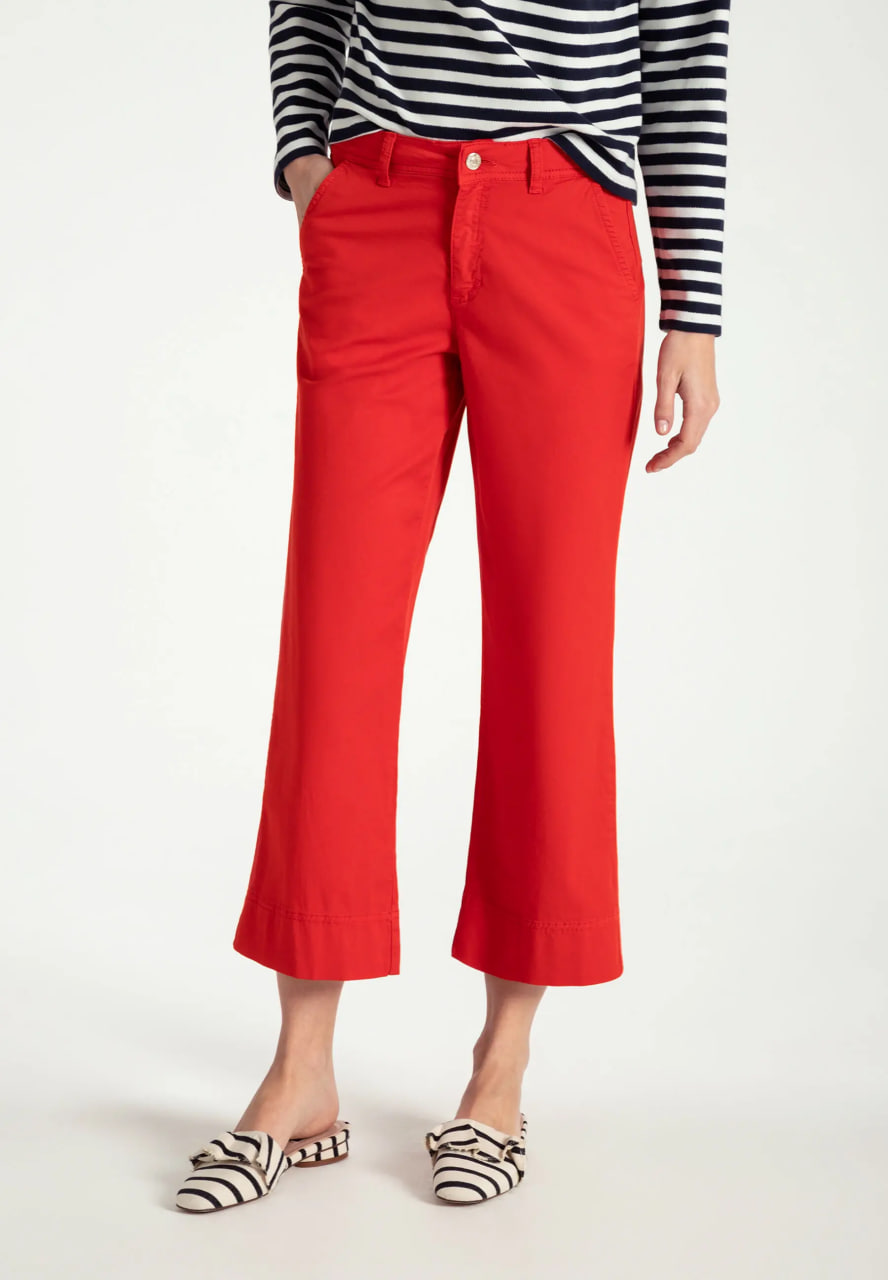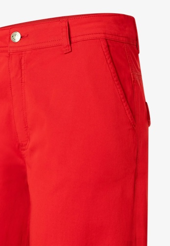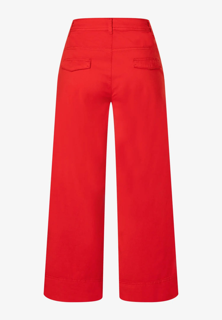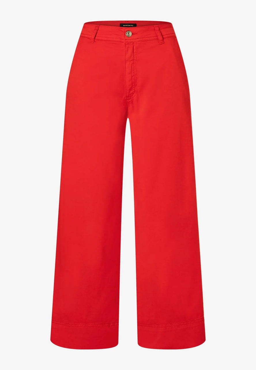 Укороченные брюки широкого кроя от премиального бренда MORE & MORE красного цвета. Модель с комфортной средней посадкой, безупречно сидящей на любой фигуре и корректирующей силуэт. Широкий покрой зрительно удлиняет ноги. Удобные накладные карманы расположены по бокам. Изготовлены из высококачественного материала.