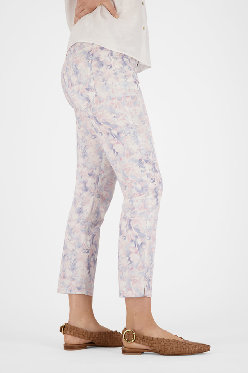 Зауженные брюки с пятью карманами, стильным принтом и укороченным кроем. Стильные и комфортные — идеальны для летних образов.