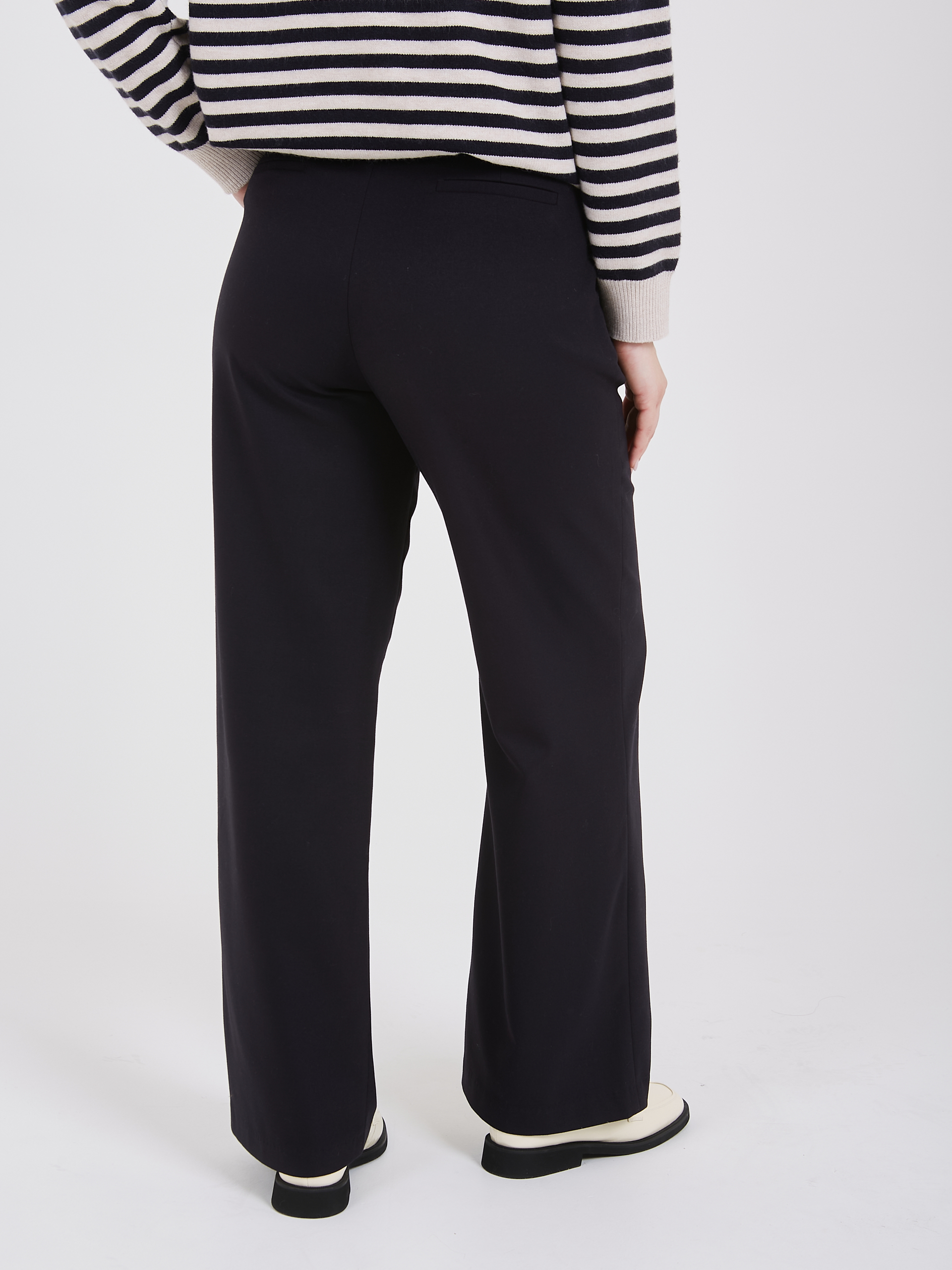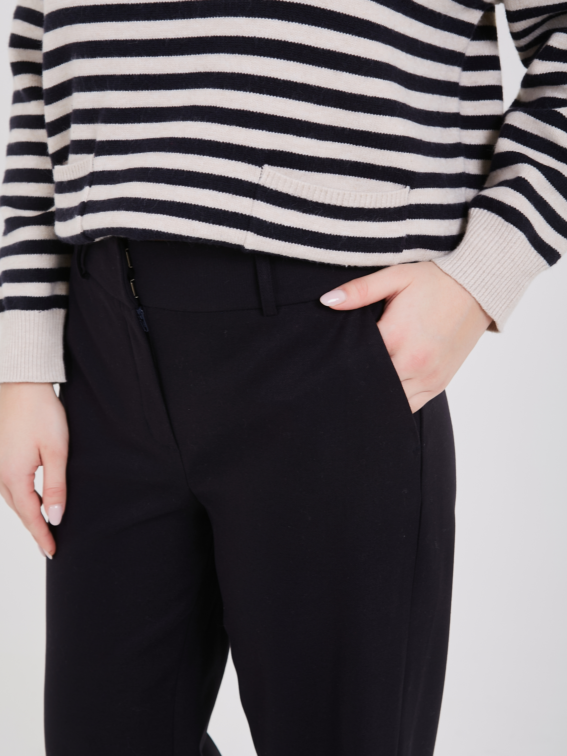 Черные брюки классического прямого кроя. Простота линий позволяет легко сочетать брюки с различными элементами гардероба, создавая стильные и гармоничные образы.