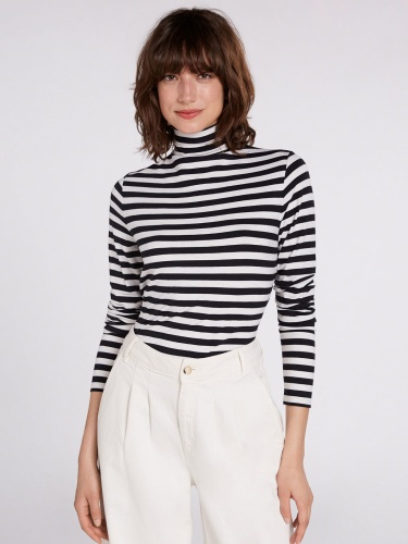 Базовая водолазка во французском стиле. Слегка приталенный силуэт, высокий воротник-гольф, втачные рукава полной длины. Водолазка может выступать как самостоятельный верх или надеваться под жакет, кардиган, блейзер или сарафан. Рост модели 178 см, ее размер – 42 (российский).