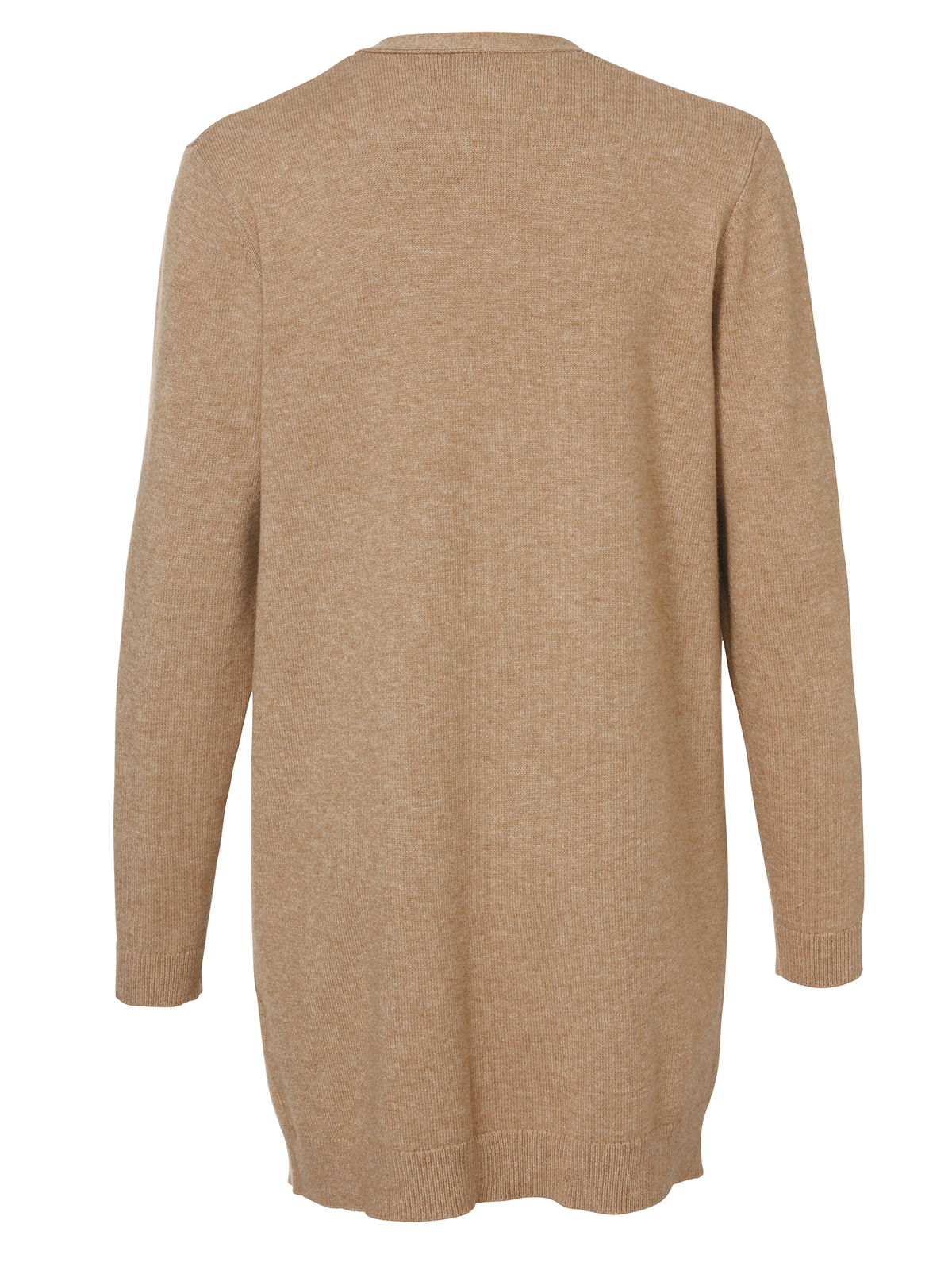 Базовый кардиган бежевого оттенка. Нежный материал изделия приятен к телу. Оверсайз силуэт, накладные карманы, длинные рукава с манжетами-резинками.