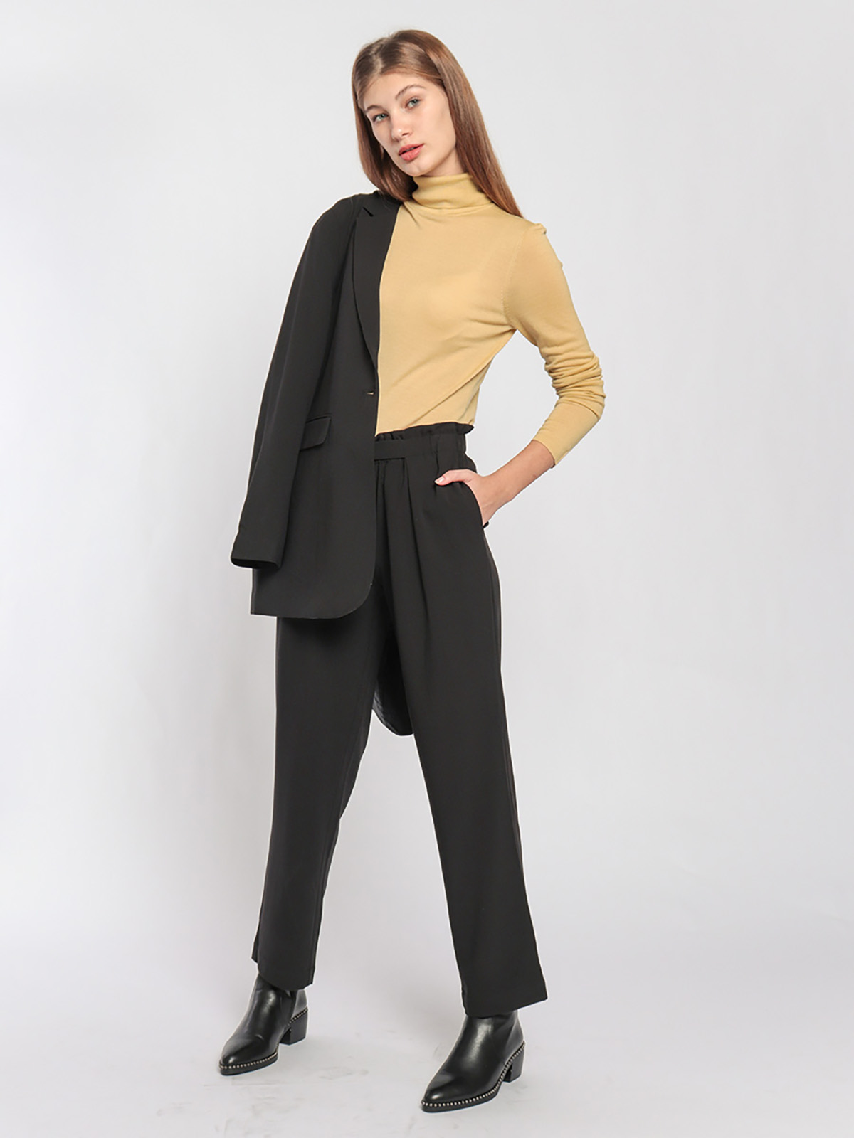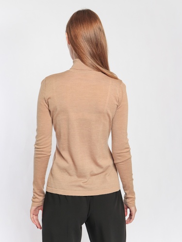 Однотонная базовая водолазка идеально подойдет для многослойных образов. Материал из 100% шерсти приятен к телу и хорошо сохраняет тепло. Приталенный силуэт, воротник-гольф, длинные втачные рукава.