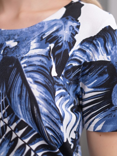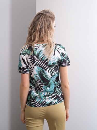 Прямой покрой джемпера скроет недостатки фигуры. Круглый вырез горловины создаст женственный образ. Модный в новом сезоне принт с тропическим мотивом подчеркнет чувство вкуса обладательницы джемпера. Данная модель будет удачно сочетаться как с брюками, так и с юбкой.