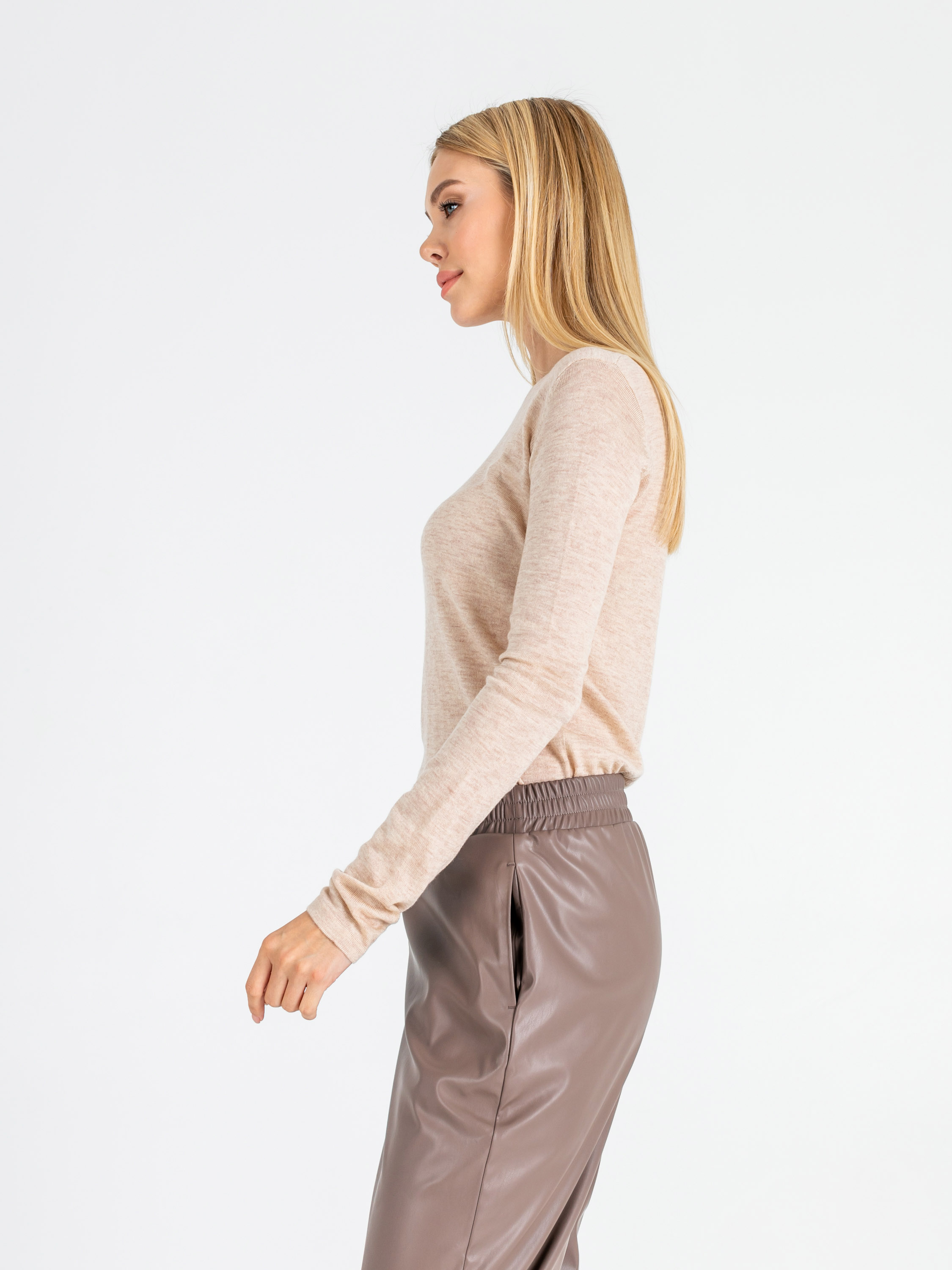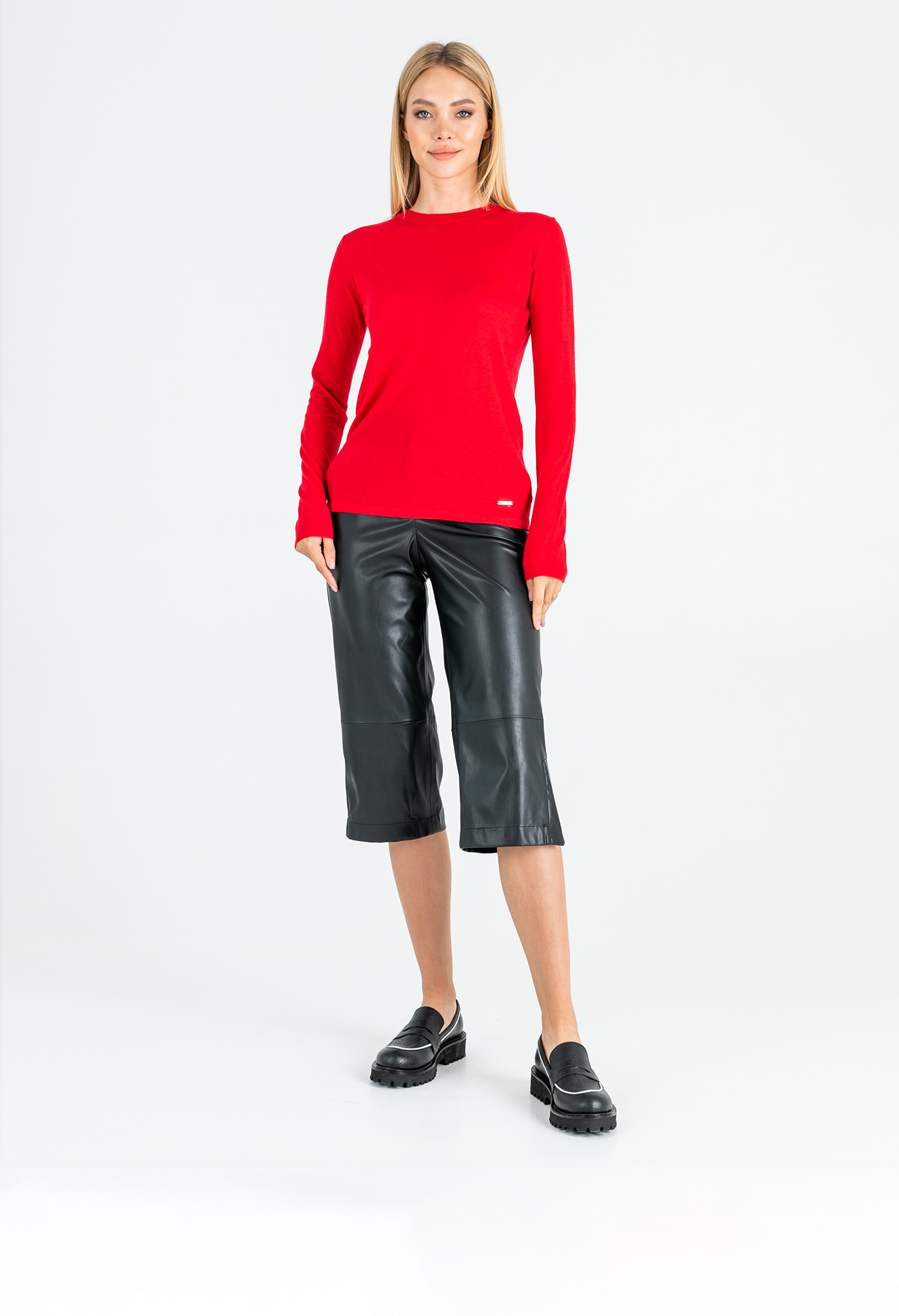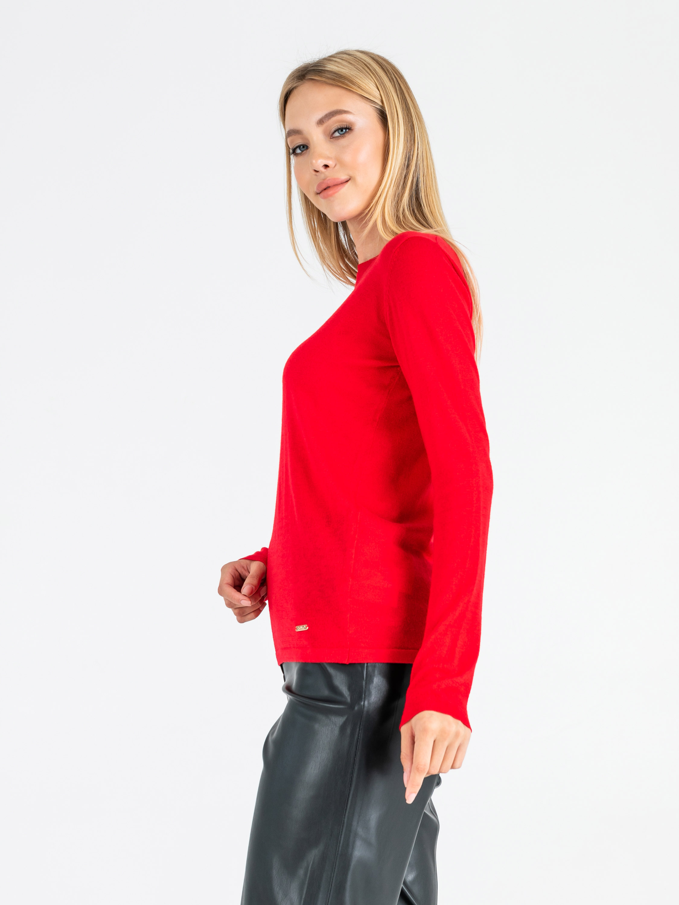 На сайте указан российские размеры. Ткань: 54% полиэстер, 20% акрил, 20% нейлон, 6% шерсть. Крой: гладкий трикотажный джемпер приталенного силуэта. Модель с круглым вырезом – идеальный вариант для повседневной носки, занятий спортом или создания рабочего образа. Тонкий, легкий и при этом очень теплый джемпер подчеркивает все достоинства фигуры. Представлен в трех актуальных оттенках – насыщенном синем, ярком красном и спокойном бежевом. Отделка: украшен фирменным металлическим шильдиком. С коллекцией брюк и юбок для создания полноценного образа можно познакомиться в соответствующих разделах нашего сайта. Рост модели - 177 см