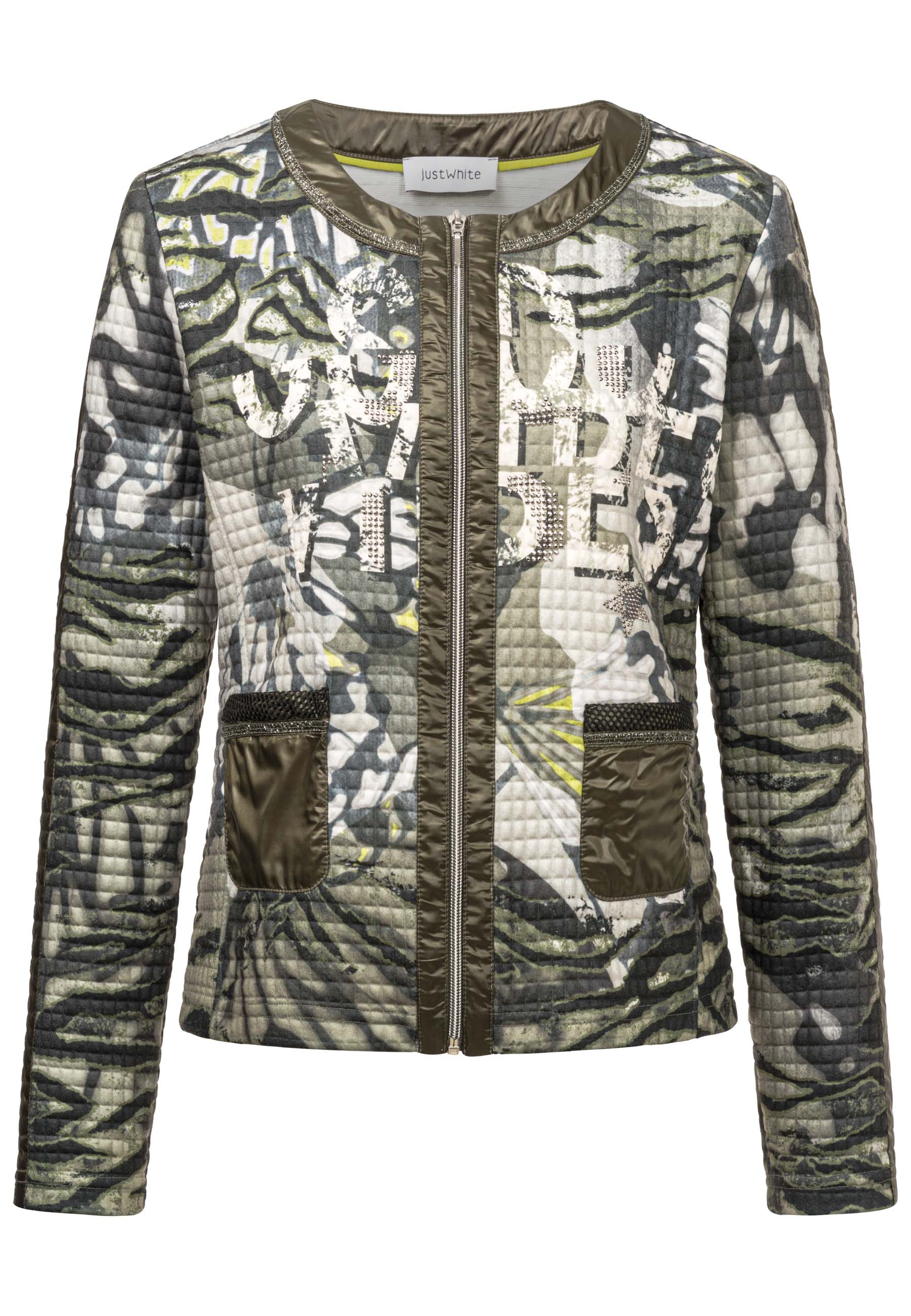 На сайте указаны российские размеры. Яркая стеганая куртка с изысканными деталями из страз и накладными карманами. Спереди искусно сочетаются красивые узоры, которые придают стеганому блузону изысканный и ценный вид. Полоски из нейлона современного качества подчеркивают спортивный характер, а накладные карманы с сетчатой вставкой и люрексовая полоса делают куртку универсальной. Швы создают женственный и подчеркивающий фигуру вид. Наша модель ростом 177 см. Измерения для размера 44: Окружность груди: 99 см Талия: 89 см Бедра: 102 см Длина по спинке: 58 см. Длина рукава: 62 см.