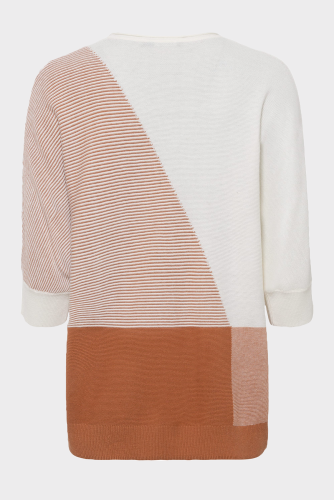 Джемпер с асимметричным современным рисунком и вырезом из драгоценных камней. Высокое содержание хлопка для комфорта и воздухопроницаемости. Модель свободного кроя с рукавами «летучая мышь».