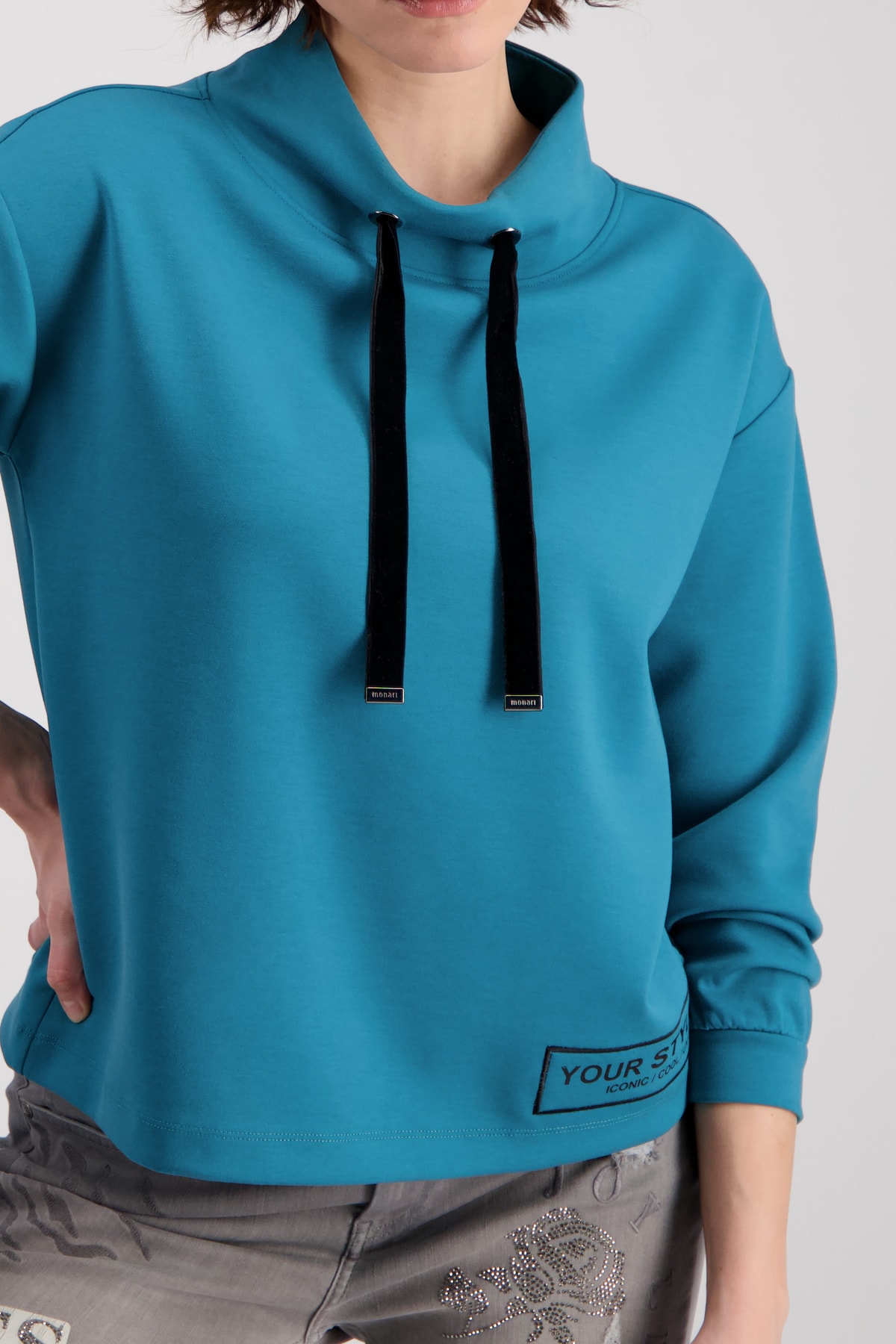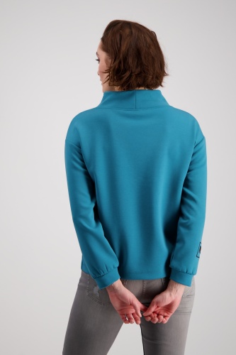 Повседневный свитер с длинными рукавами выполнен из мягкого, приятного на ощупь материала, эластичного и женственного вида. На правом рукаве и спереди модная нашивка с вышивкой и стразами. Длина 44 размера 62 см.