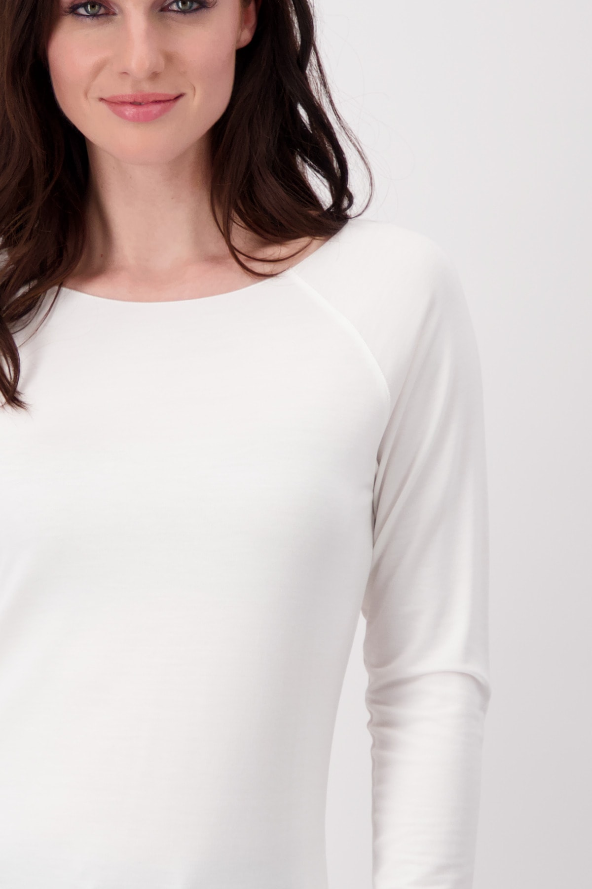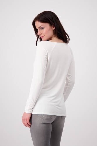 Ультрамягкая рубашка с длинными рукавами и круглым вырезом — идеальная базовая рубашка для вашего гардероба. Смесь вискозы с стрейчем гарантирует высокий уровень комфорта. Длина 44 размера 64 см.