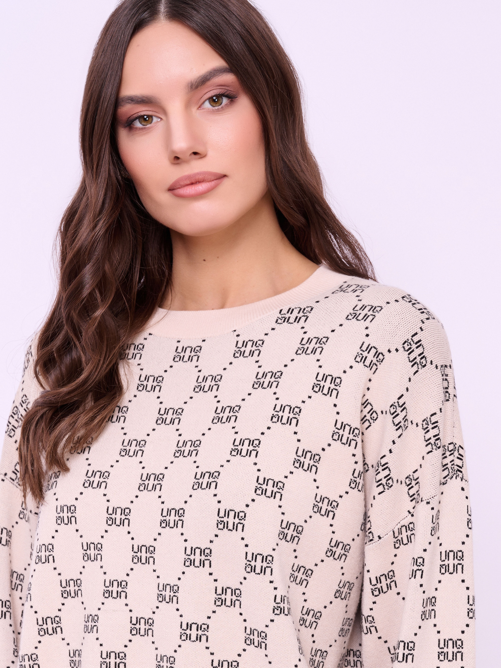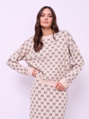Детали: вырез горловины округлый, рукава длинные, покрой прямой, рисунок орнамент из надписей. Длина по спинке: 55 см.
