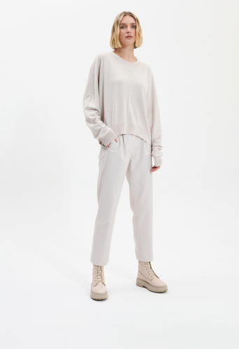 Трикотажный джемпер из смеси кашемира с круглым вырезом горловины. Передние и задние швы с припуском.