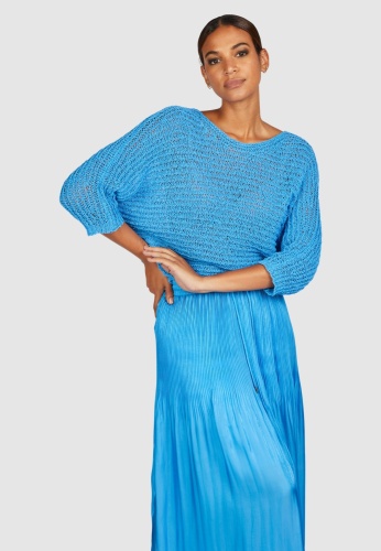 Свитер «крыло летучей мыши» изготовлен из высококачественной пряжи букле, очень мягкой на ощупь. Он сделан из хлопка от Better Cotton Initiative. Вырез «лодочка» и повседневная ширина так же впечатляют, как и модный горизонтальный вязаный узор