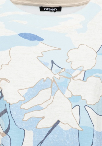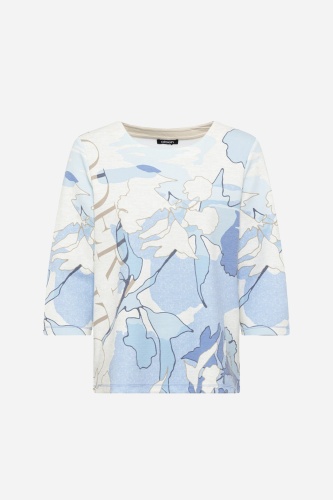 Супермягкий джемпер сочетает в себе абстрактный принт в спокойных оттенках синего с элементами дизайна нейтрального типографского принта. Имеет круглый вырез горловины и разрезы по бокам внизу. Модель Henny имеет прямой крой и слегка прилегает к телу.