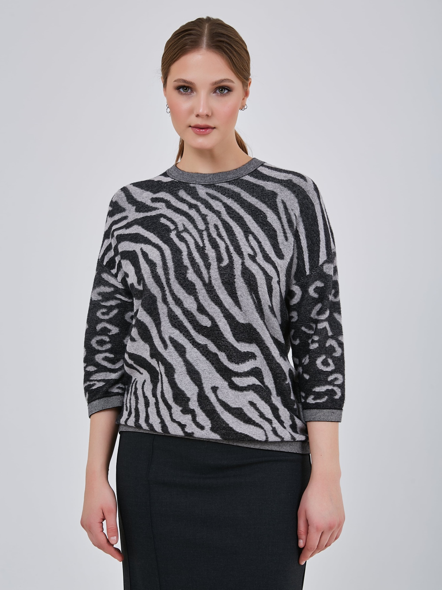 Анималистичный джемпер с длиной рукава 3/4, с небольшим декором в виде страз в цвет изделия. Коллекция Осень-Зима 2024. Капсула "Гостья из Будущего"