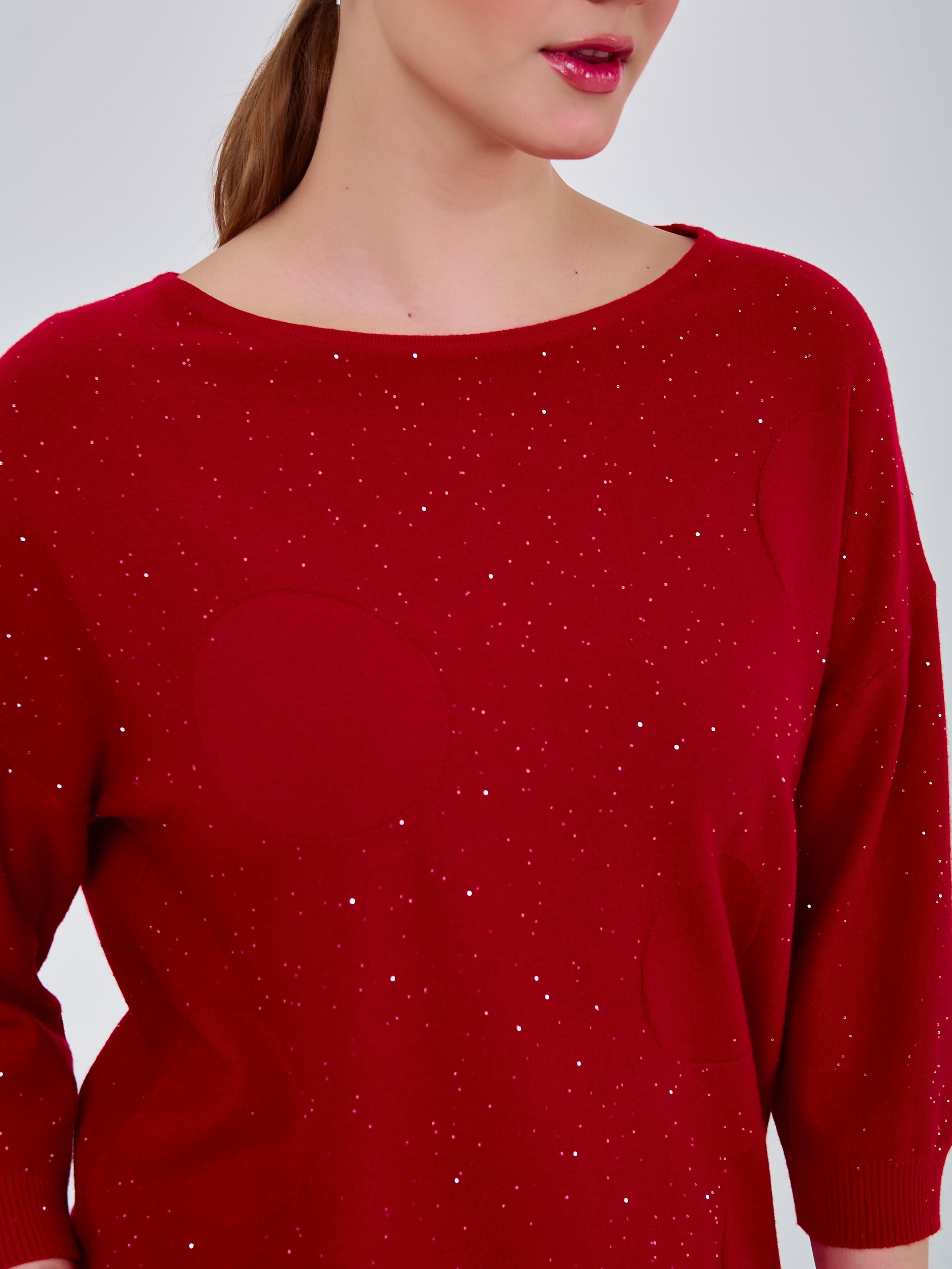 Базовый джемпер трендового оттенка красного, деликатно украшенный микропаетками.Осень-Зима'25/26. Капсула "Алые Паруса"