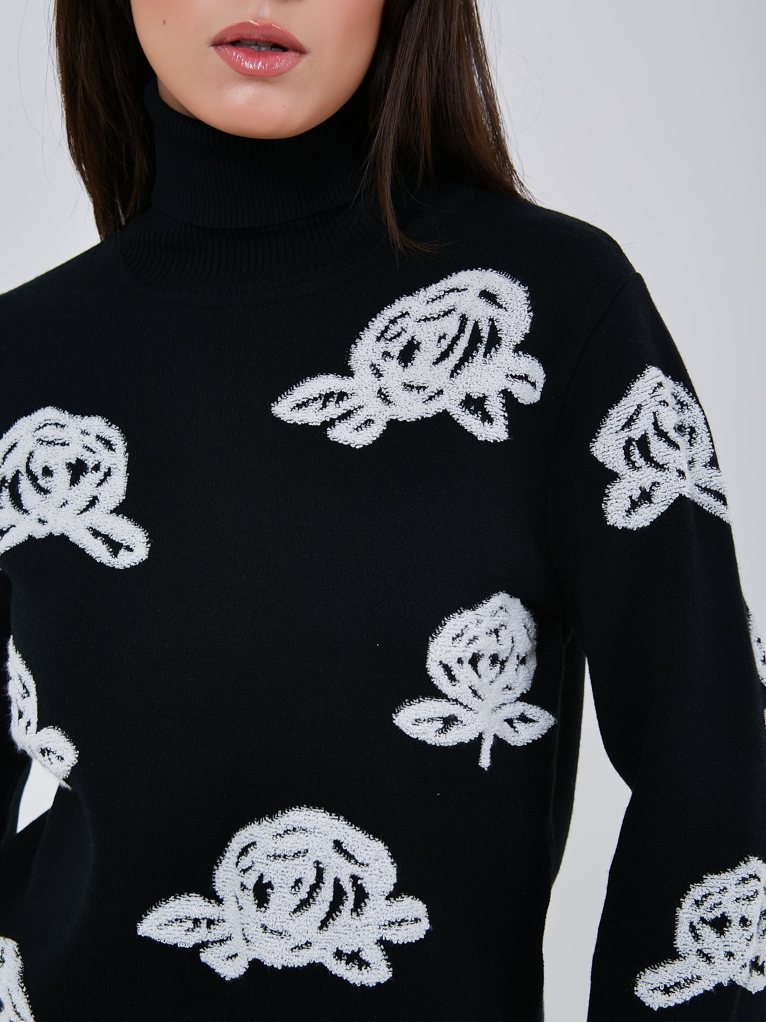 Стильный трикотажный джемпер с чёрно-белым принтом, выполненным в объёмной технике. Осень-Зима'25/26. Капсула "Малахитовая шкатулка"