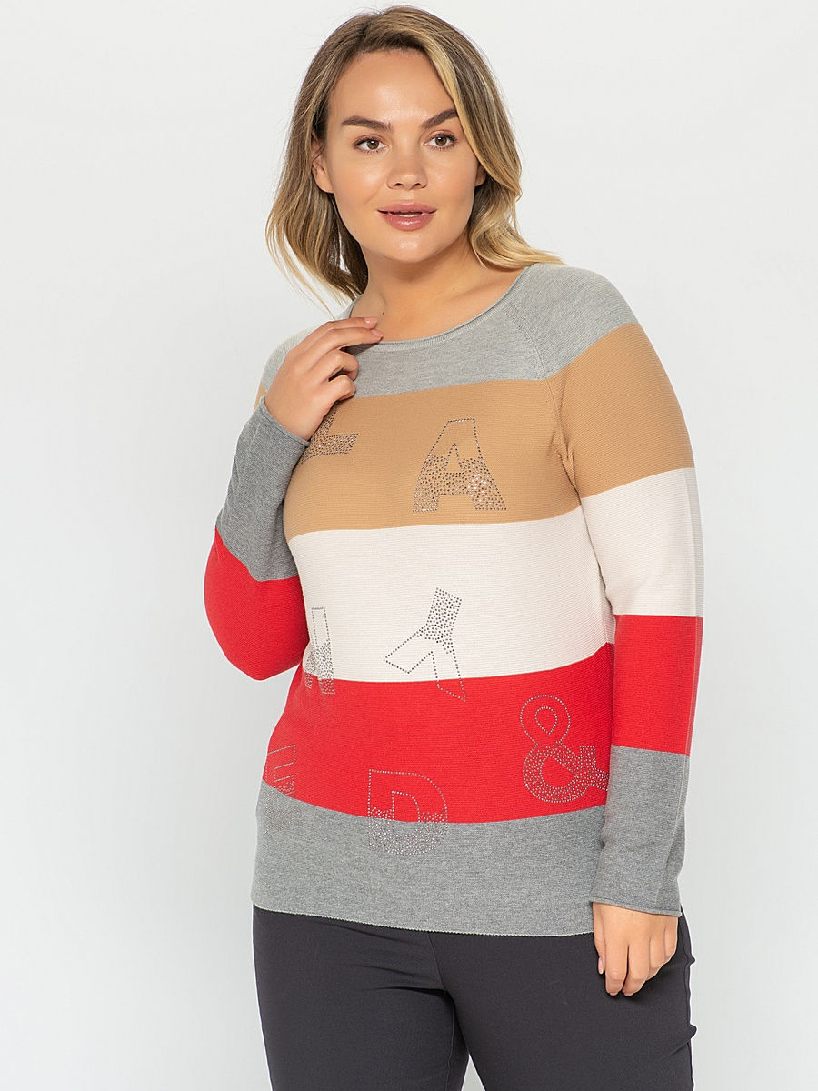 Стильный джемпер обращает на себя внимание благодаря контрастной расцветке и декору стразами. Другие детали дизайна - прямой покрой, круглый вырез горловины, рукава реглан полной длины. Материал из хлопковой смеси приятен к телу и прост в уходе.