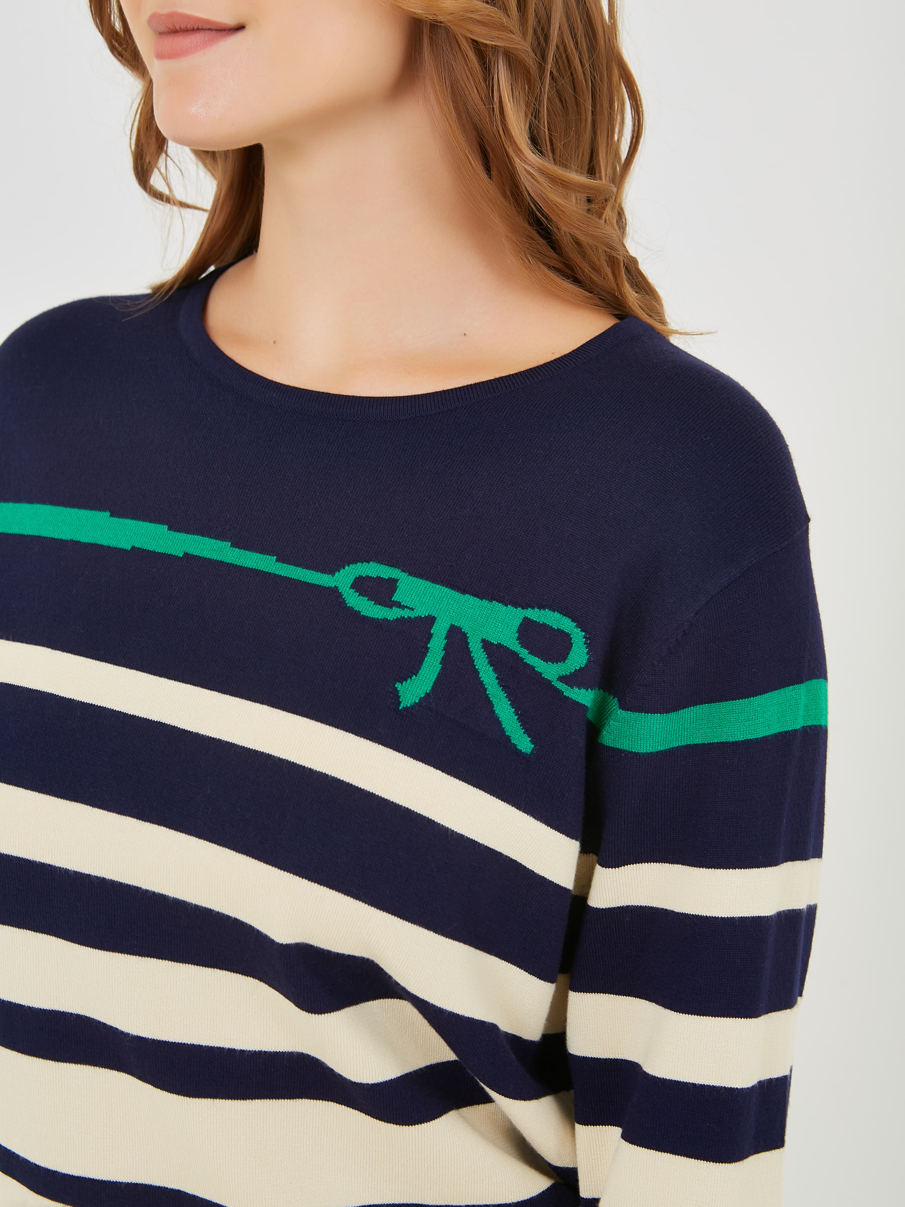 Классический джемпер с полосками различной ширины. Весна-Лето 2025. Капсула "Марракеш". Параметры модели: 95-64-101, рост 175, размер 44-46