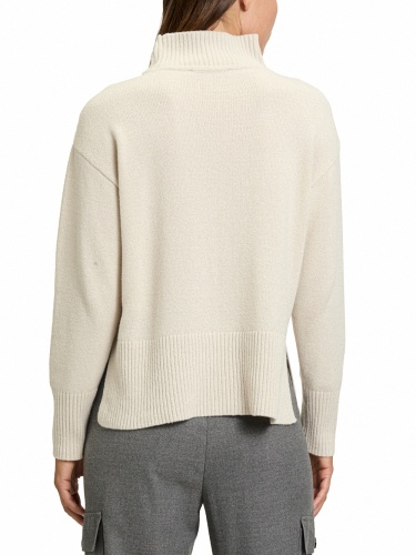 Классический свитер молочного цвета с высоким горлом и выточками по бокам. Подойдет как к классическому так и к свободному стилю