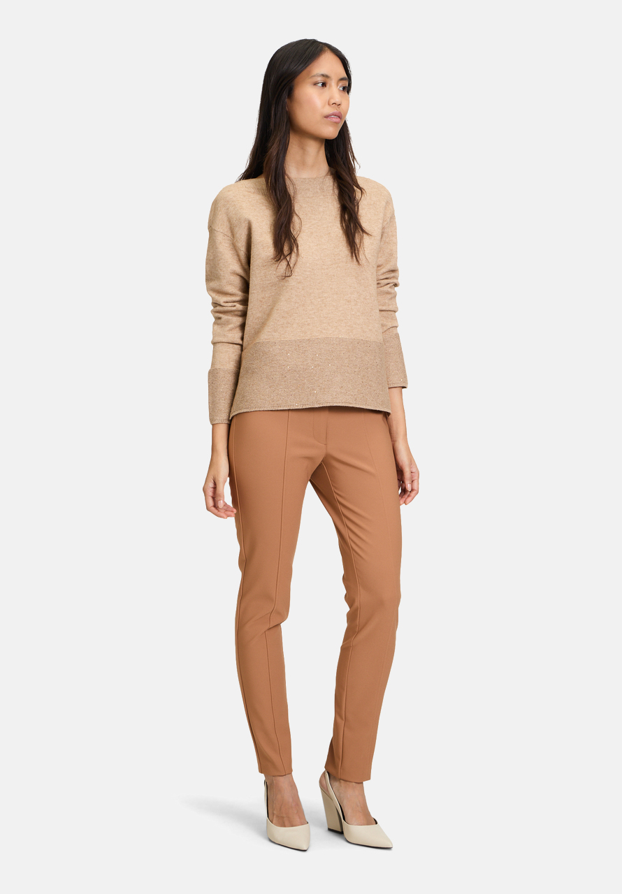 Повседневный вязаный свитер с отделкой из сверкающих пайеток от Betty Barclay. Вырез-лодочка и спущенные рукава придают изделию современный вид, а простой дизайн делает его универсальным. Идеально подходит для создания непринужденных повседневных образов с ноткой гламура.