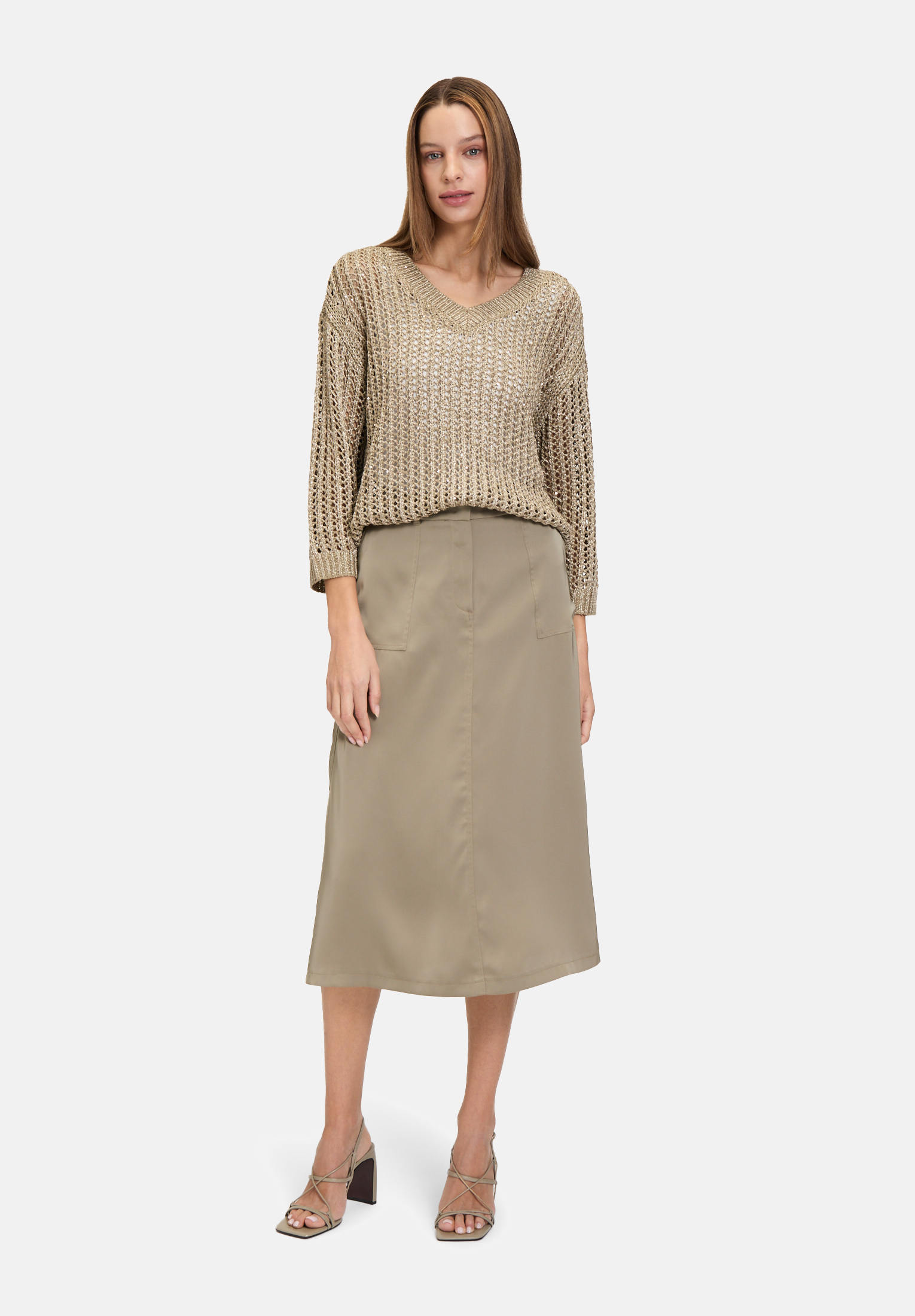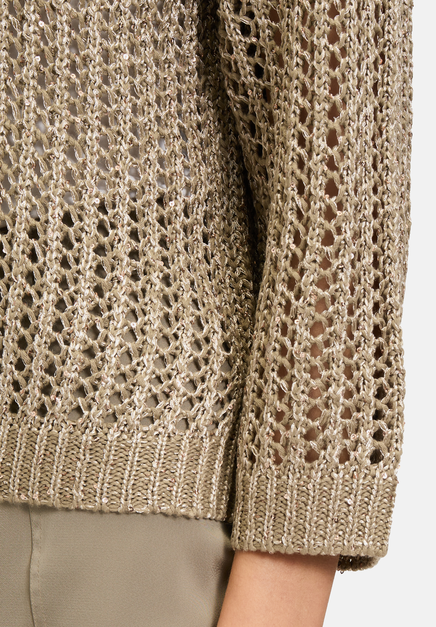 Этот ажурный свитер добавит элегантности вашему образу благодаря блестящим акцентам и непринужденному, простому крою. V-образный вырез и свободный крой создают современный, непринужденный образ, а укороченные рукава 3/4 обеспечивают дополнительный комфорт и непринужденный вид. Идеально подходит для модных повседневных образов с ноткой гламура!