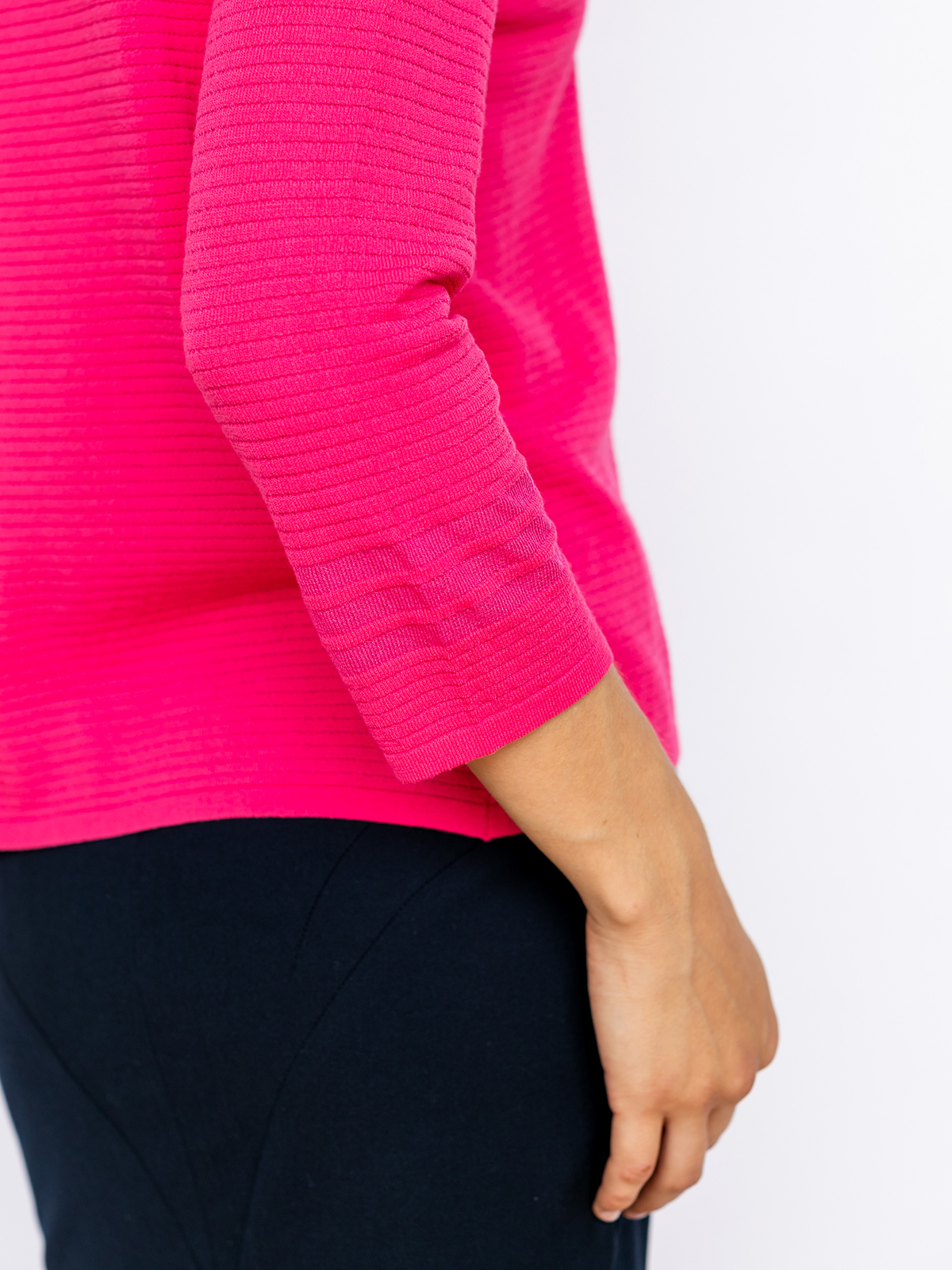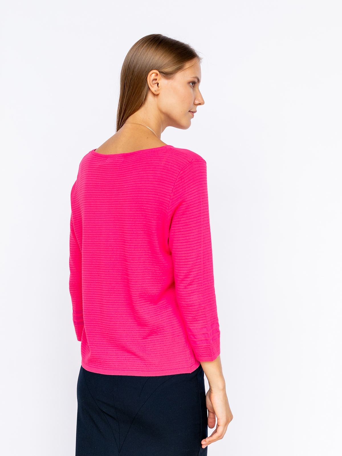 На сайте указаны российские размеры. Ткань: смесовая эластичная ткань. В составе:15% полиамид, 60% вискоза, 25% полиэфир. Крой: джемпер прямого силуэта с рукавом ¾ и круглым вырезом. Эластичность материала позволяет изделию садиться на разные типы фигур, а достаточная плотность – не подчеркивать недостатки фигуры. Отделка: яркий цвет в сочетании с объемной фактурой – именно так в Stern представляют стиль современной женщины, живущей полной жизнью. В ассортименте Stern вы найдете сотни вариантов для создания ярких образов с этим джемпером. Загляните в разделы брюк, юбок и джинсов.