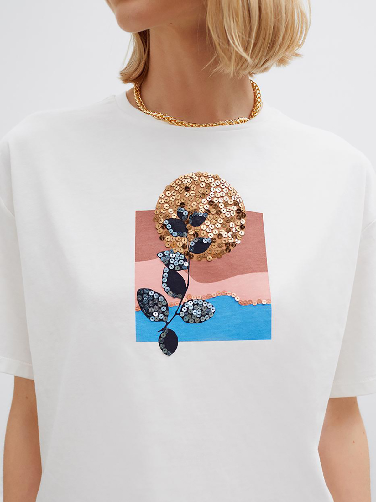Белая футболка спринтом – базовый элемент капсульного гардероба любой современной женщины. Универсальна, прекрасно подходит для образов в разном стиле от делового до повседневного городского.