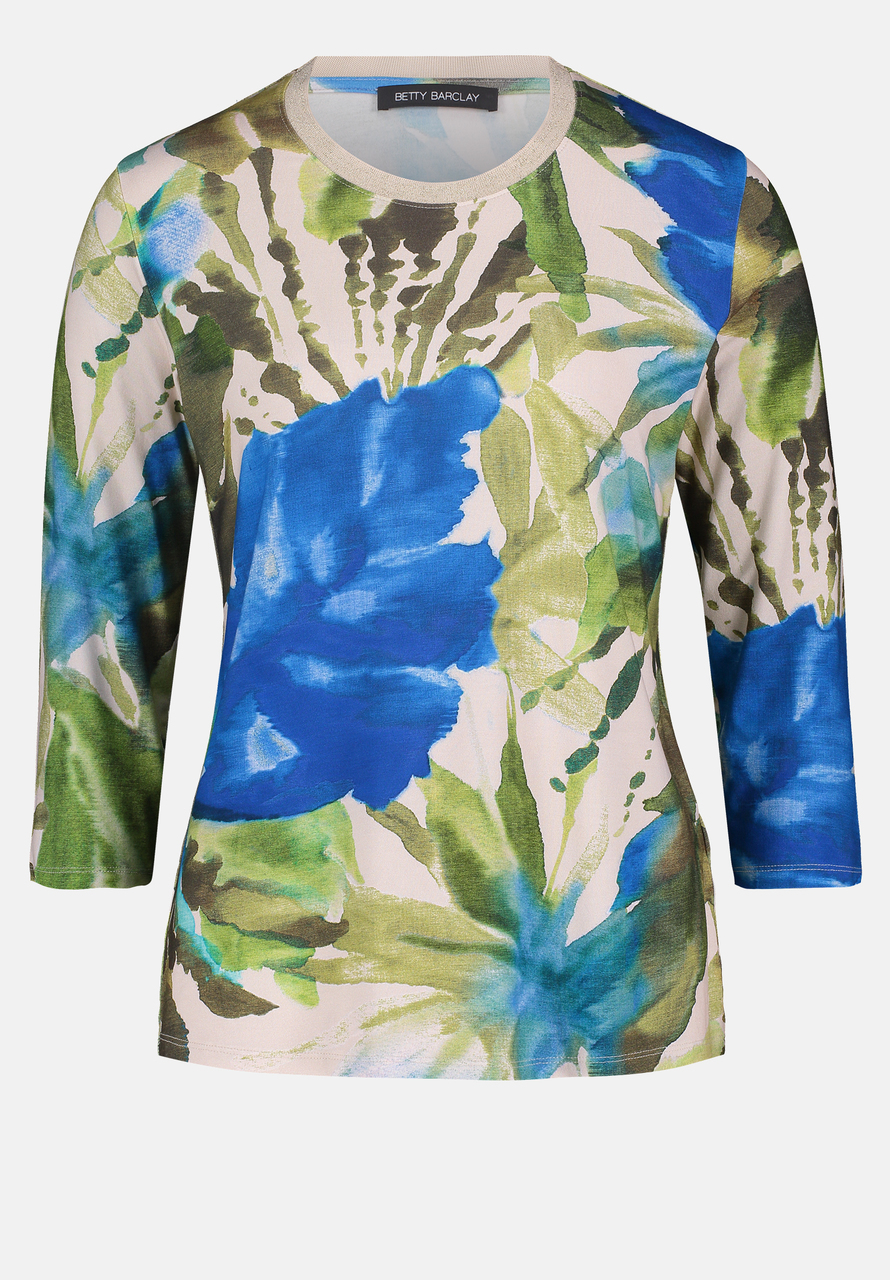 Базовая рубашка с принтом. Приталенный крой и материал из вискозы обеспечивают удобную посадку верха. Рукава 3/4. Длина 64 см.