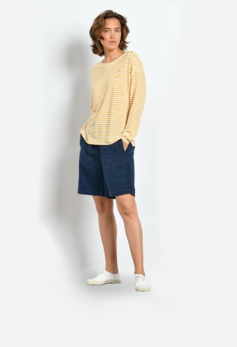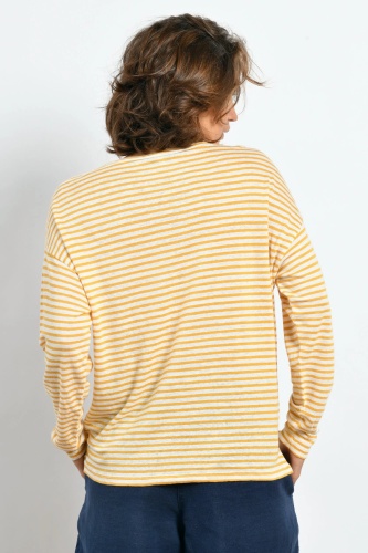 На сайте указаны Российские размеры. Футболка прямого кроя с длинными рукавами и спущенными плечами. Вышивка якоря на груди. На левом плече нарядная застежка с перламутровыми пуговицами. Круглый воротник. Небольшие разрезы по низу изделия.