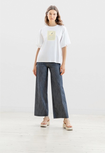 На сайте указаны российские размеры. Классическая белая футболка из 100% мерсеризированного хлопка прямого силуэта с круглой горловиной, спущенным плечом и коротким рукавом. Спереди цветочный моно-принт в бежевом цвете. Идеальное дополнение к повседневному образу. Рост модели на фото - 175 см.