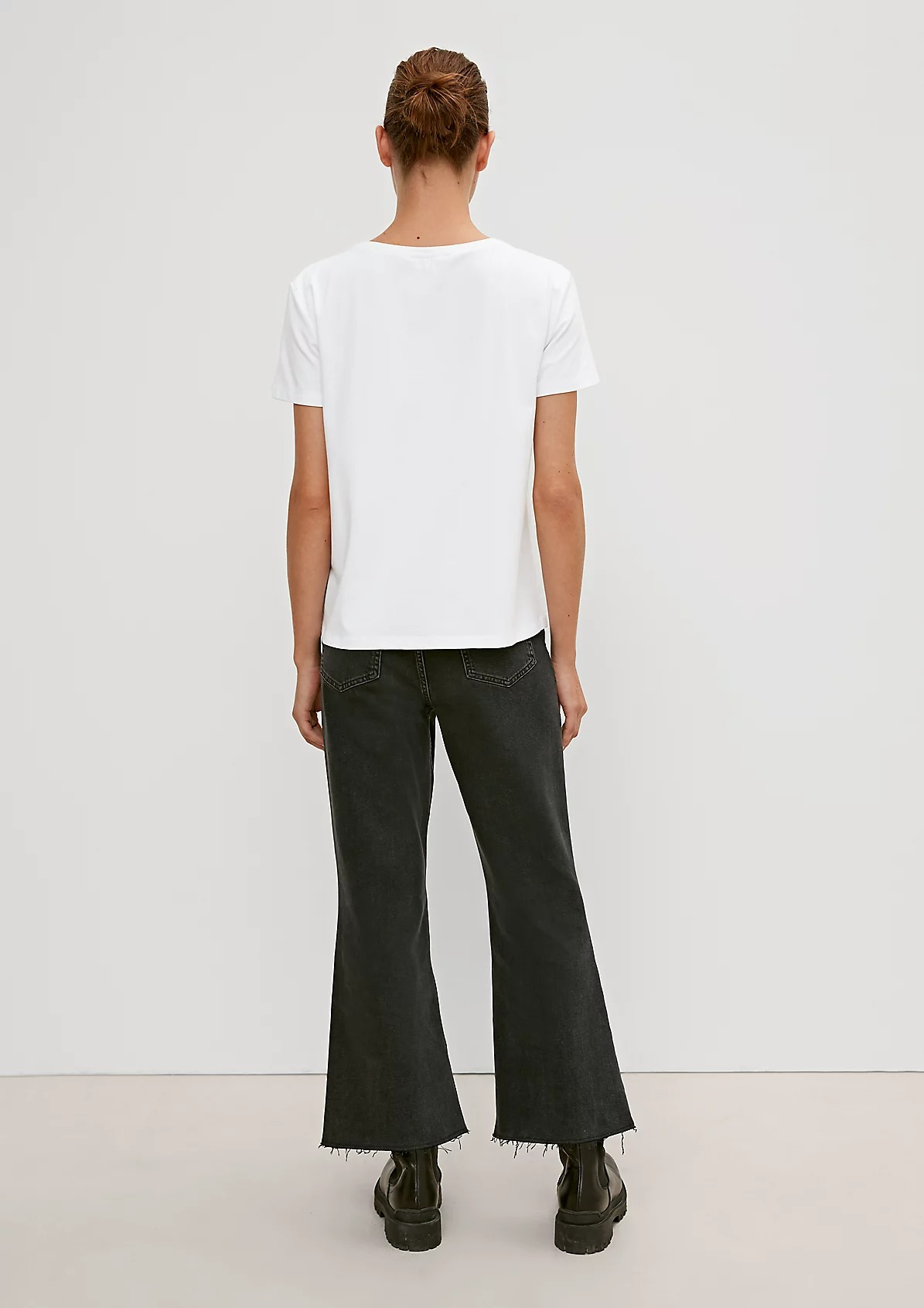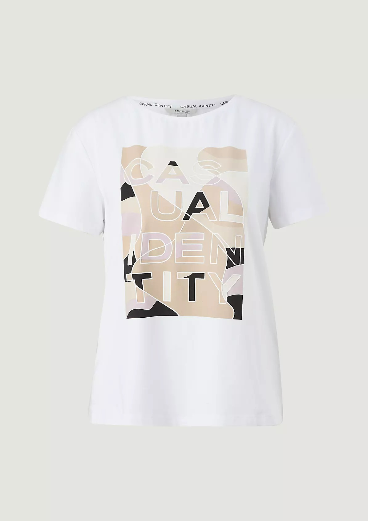На сайте указаны российские размеры. Повседневная футболка с анималистичным прорезиненным принтом. Круглый вырез горловины с окантовкой в рубчик. Длина спинки в 42 размере - 62 см.
