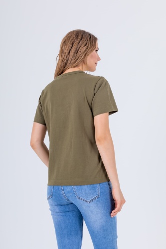 На сайте указаны российские размеры. Футболка средней длины прямого силуэта из легкого 100% хлопка. По переду выполнен растительный принт с надписями. Укороченные втачные рукава. Круглый вырез горловины.