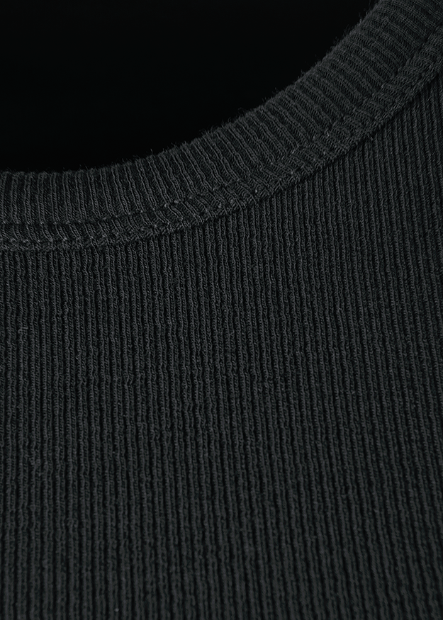 На сайте указаны российские размеры. Универсальный базовый топ, который одинаково хорошо смотрится как под блейзером, так и под джинсовой рубашкой или с повседневным трикотажем. Естественно - вполне аутентично - из хлопкового трикотажа в рубчик, который здесь эластичный и поддерживает облегающий крой. Модель ростом 177 см.