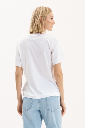 Белая футболка с размещенным принтом. Разноцветное фото кактуса с уникальным логотипом и нанесением страз. Немного укорочена. Короткий рукав. Длина: 62 см.