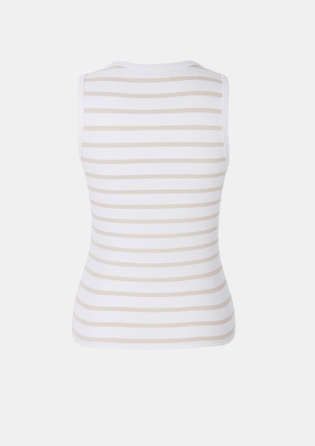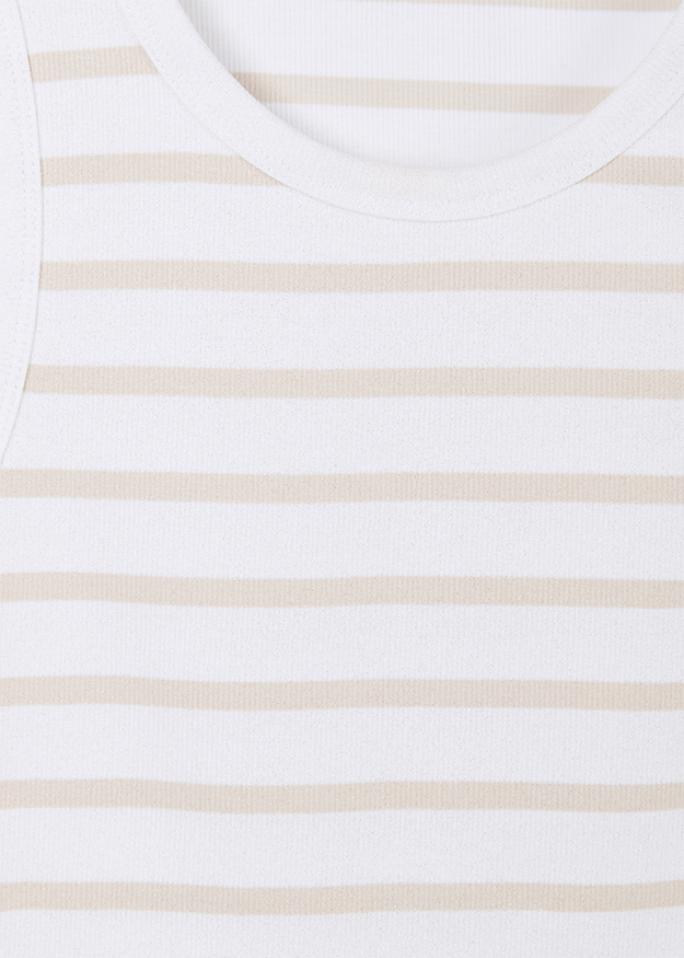 Классика для отдыха: спортивный топ с круглым вырезом и модными полосками — это вневременной универсал, который привнесет свежесть в любой образ. Его можно использовать для создания множества повседневных стилей, а также носить как базовую вещь под пиджаком или блейзером. Мы создали этот топ из удобного эластичного трикотажа в рубчик на хлопковой основе.