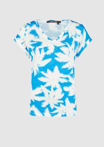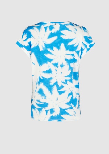 Футболка из высококачественной эластичной вискозы обеспечивает идеальную свободу движений. Принт пальмы излучает ощущение отпуска и хорошее настроение. Заниженные плечи и модная повседневная ширина дополняют изысканный, непринужденный образ.