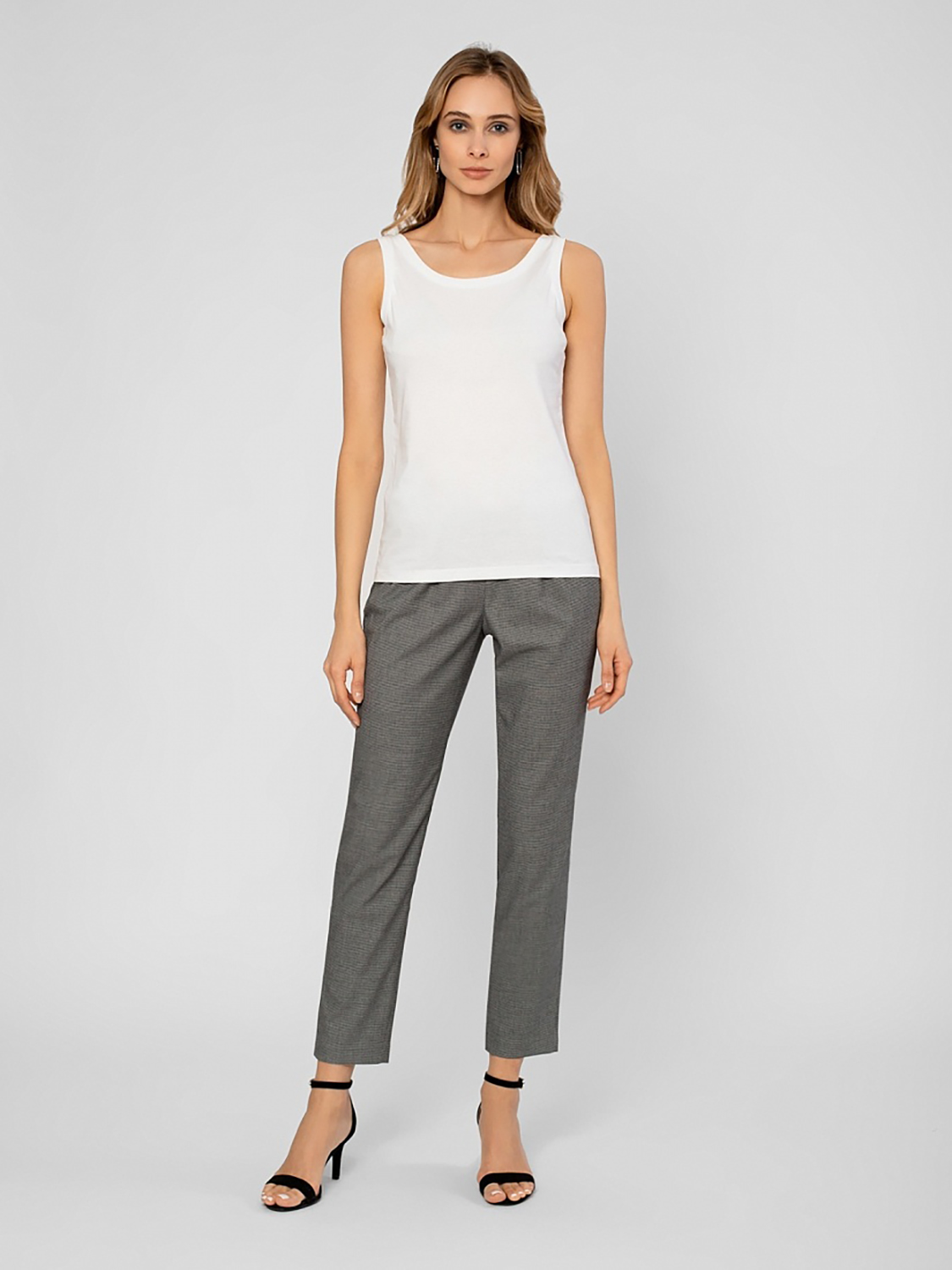 Базовый однотонный топ с широким овальным вырезом. Приталенный силуэт. Топ прекрасно сочетается с любым низом, белоснежный оттенок придает свежести образу.