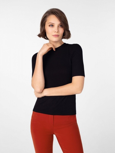 Футболка прямого силуэта из фактурного трикотажного полотна с круглой горловиной и коротким втачным рукавом.