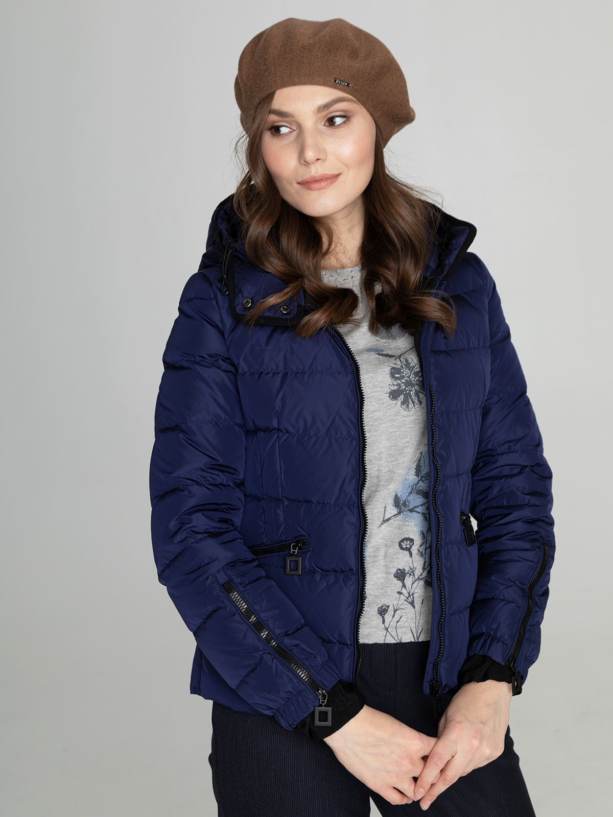 Вязаный берет с выполнен в нежном оттенке. Модель универсальна, подходит для любого типа лица. Украшение в виде металлического лейбла.
