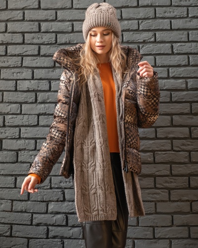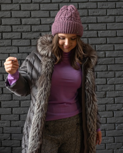 Шапка-бини с узором из кос отлично сочетается как с курткой, так и с пальто классического кроя. Изюминка модели - аккуратный металлический лейбл STERN. Модель универсальна и украсит любой овал лица. Теплая и приятная смесовая пряжа.